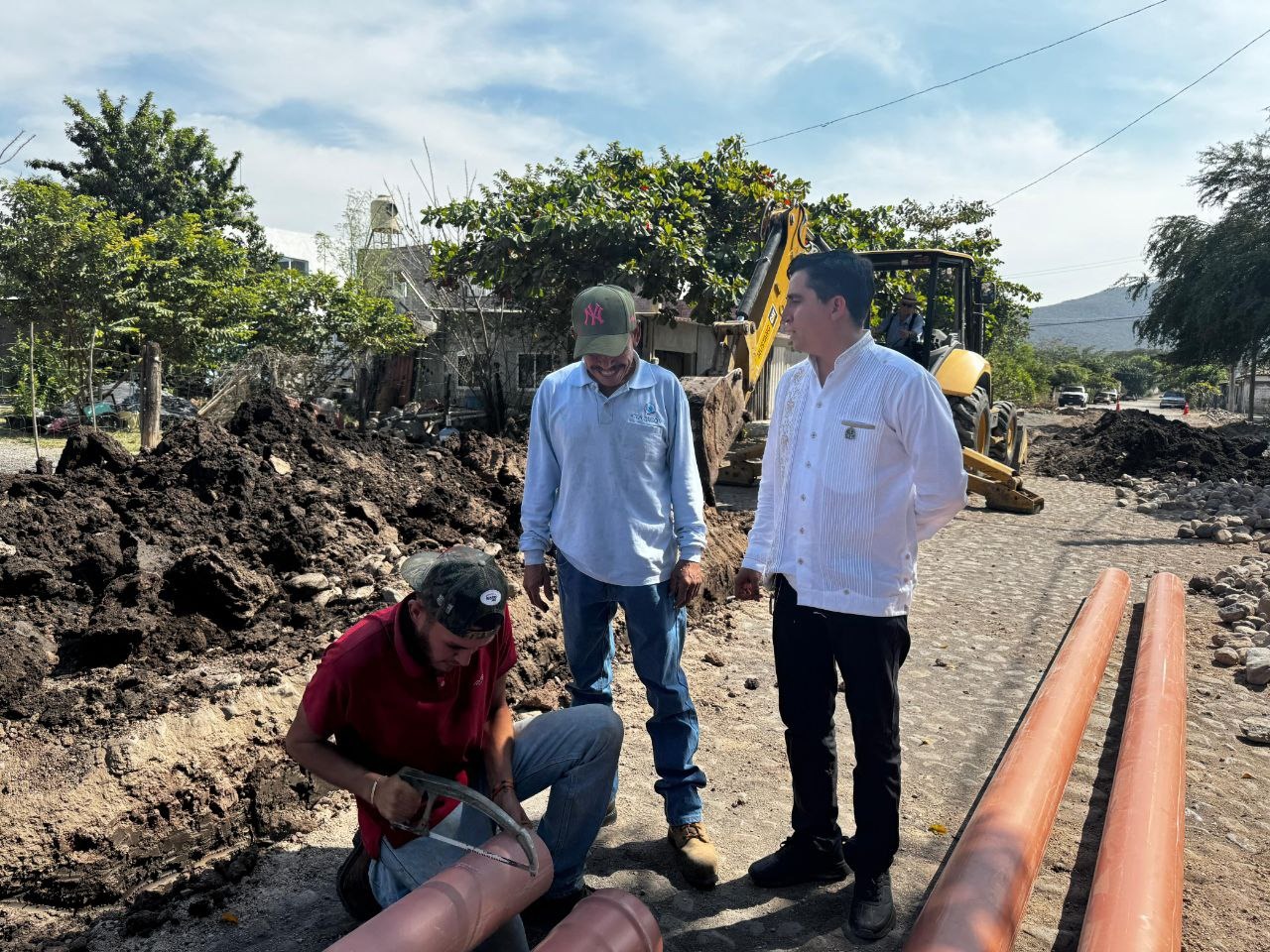 Este lunes 27 de enero, la coordinación de zona rural de CIAPACOV, realizó la sustitución de 90 metros de la línea de drenaje de 8 pulgadas ubicada en la calle Ignacio Allende en la comunidad de los Asmoles Colima; donde estuvo presente el Director General de Ciapacov, Vladimir Parra, la coordinadora del área operativa, Arq. Gisela Miramontes así como la Comisaria María del Carmen Carrizales, quienes realizaron un recorrido de acompañamiento y supervisión de la obra.