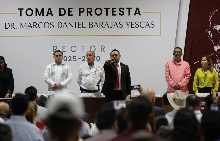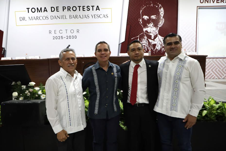 El rector de la Universidad de Colima, Christian Jorge Torres Ortiz Zermeño, asistió como invitado especial a la ceremonia de toma de protesta del segundo periodo (2025-2030) del rector de la Universidad José Martí, Marcos Daniel Barajas Yescas.