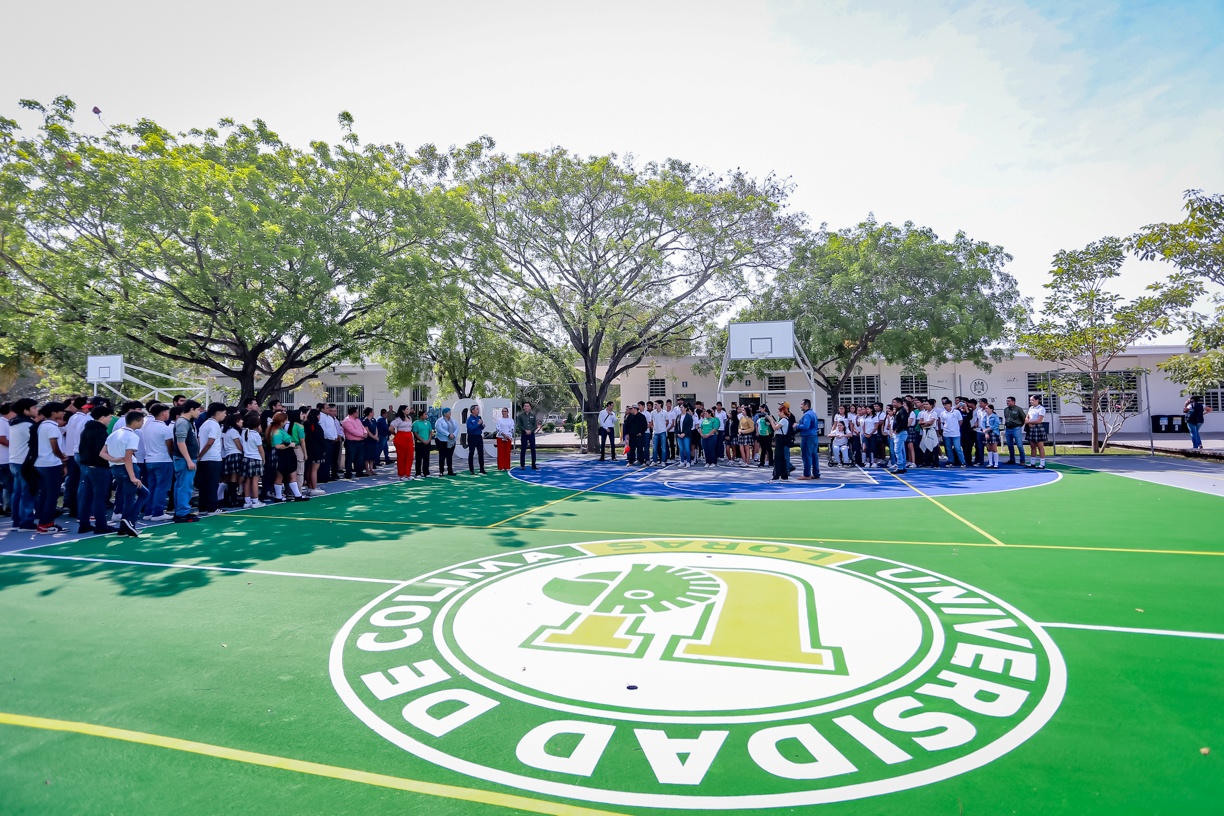 *Durante su visita a diversos planteles en Tecomán, el rector Christian Jorge Torres Ortiz Zermeño inauguró espacios renovados, como canchas deportivas y domos bioclimáticos, además de dar seguimiento a la remodelación del Polideportivo Universitario.