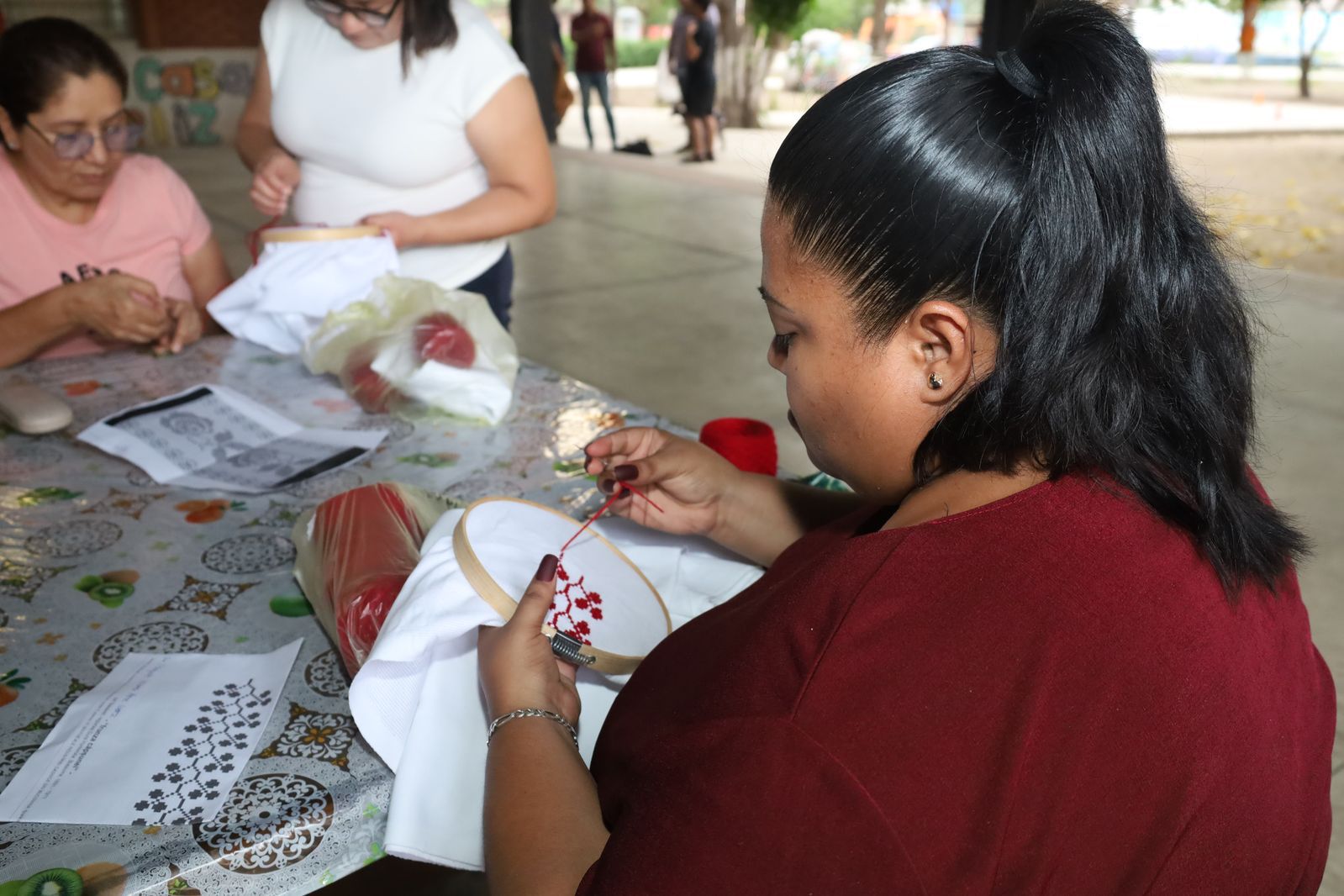 A cargo de la beneficiaria Jaqueline Puente Ávila, este proyecto tiene su sede en la Fábrica de Innovación Creativa El Tívoli, en esta capital colimense, donde se ofrece un taller gratuito de bordado en punto de cruz, con duración de siete meses, en el que las participantes aprenderán a elaborar blusas, servilletas, ajuares guadalupanos, bolsas y diversas prendas, empleando dicha técnica.