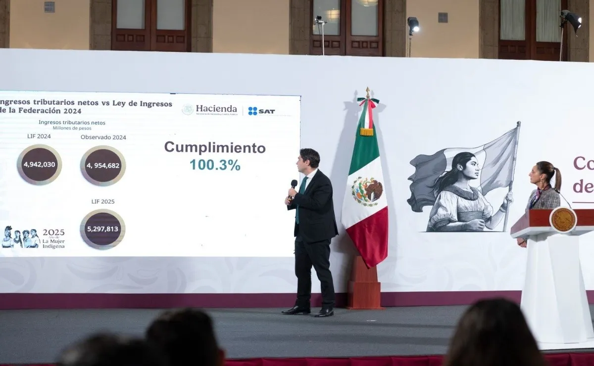 Recordó que la Ley de Ingresos de la Federación de 2025 establece cerca de 5.3 billones de pesos, lo que representa un incremento de 3.2 y en términos nominales de 350 mil millones más.