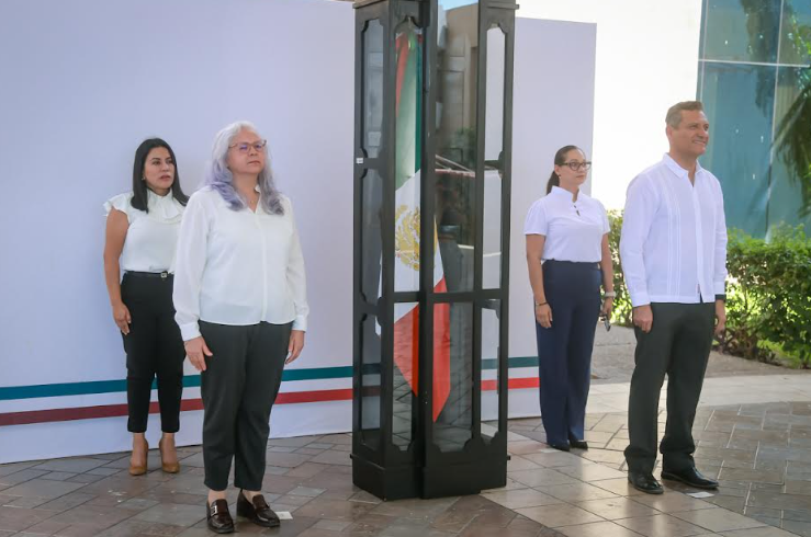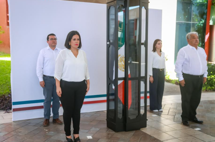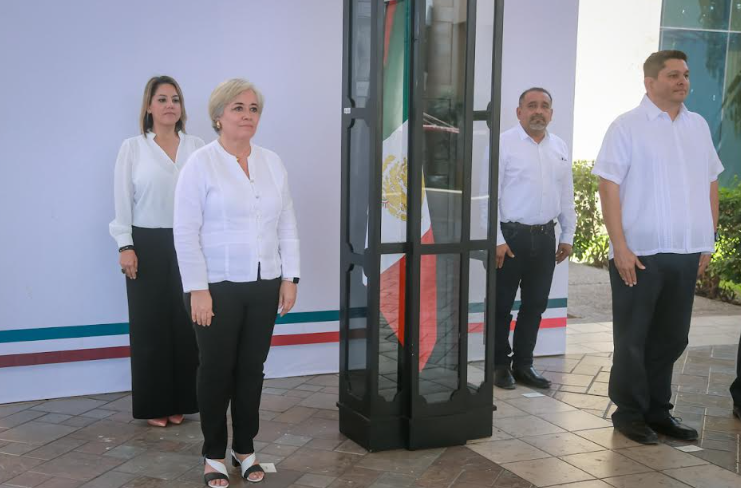 En el puerto de Manzanillo, Ana María Gallardo Vázquez, delegada universitaria, en representación del rector Christian Torres Ortiz Zermeño asistió a la ceremonia por el Día de la Bandera organizada por el Ayuntamiento de este municipio. El evento se realizó en el centro histórico y estuvo encabezado por Rocío Beltrán, secretaria del ayuntamiento en representación de Rosa María Bayardo, presidenta municipal.