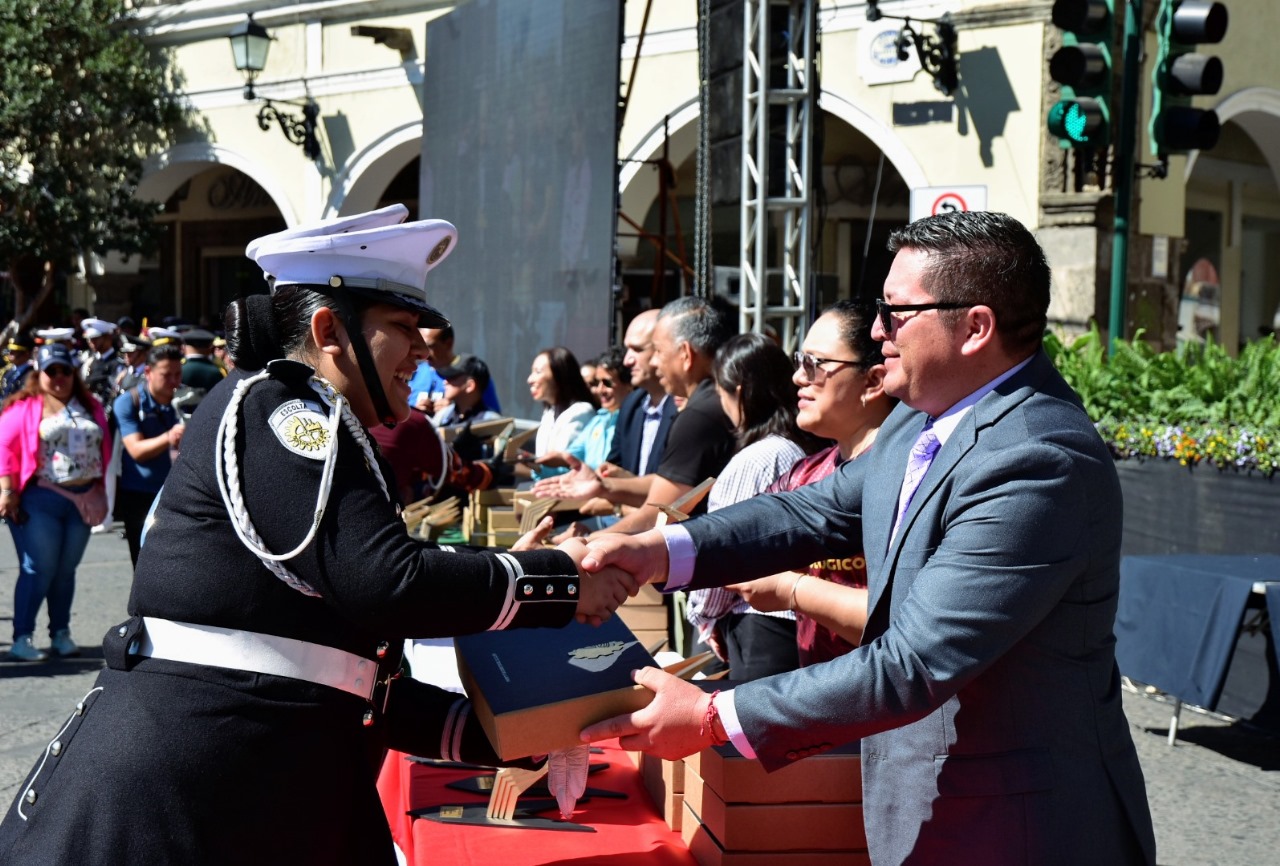 Con una coordinación que se asemeja a la perfección, las escoltas y bandas de guerra terminaron el recorrido para dar paso a la ceremonia de clausura que reunió a representantes del gobierno municipal, instituciones educativas, estudiantes y ciudadanía en general.