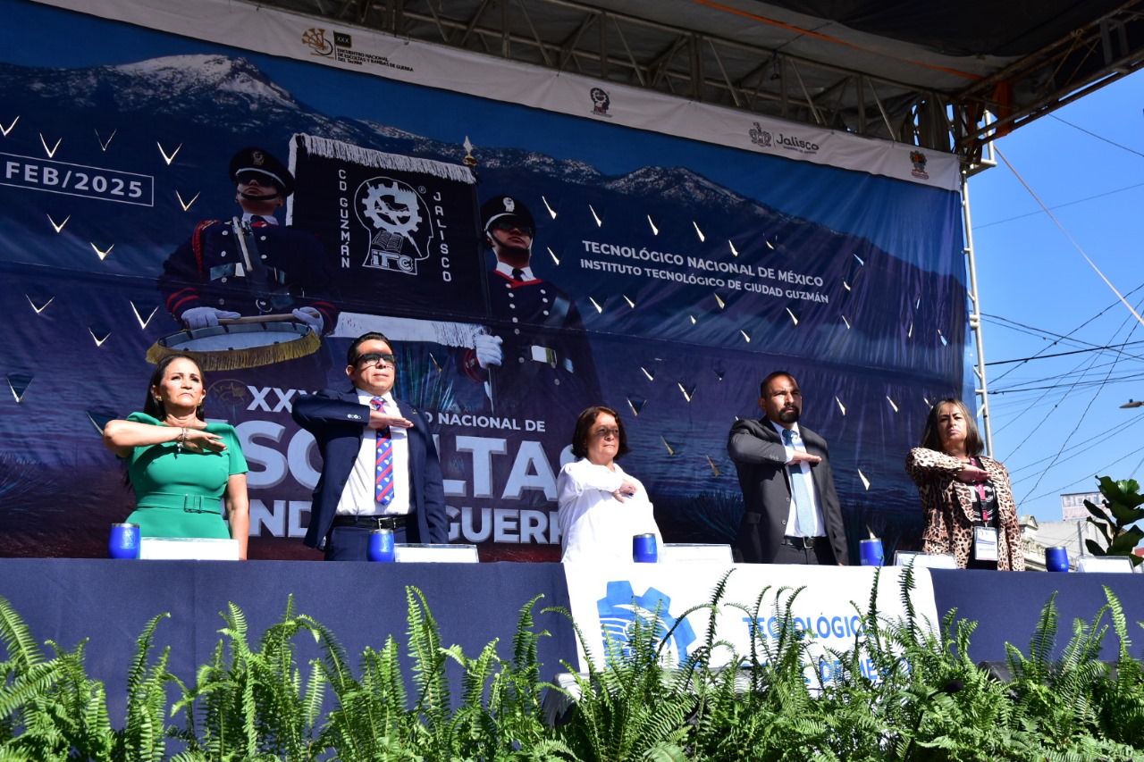 El presídium estuvo conformado por Alina Yaneth Cisneros, directora de promoción cultural y deportiva del TecNM en representación de Ramón Jiménez López, director general del Tecnológico Nacional de México; Marisol Mendoza Pinto, regidora en representación de Magali Casillas Contreras, presidenta municipal de Zapotlán el Grande; José Martín Hernández Álvarez, Delegado de la Secretaria de Educación en la Región Sur en representación de Pablo Lemus, Gobernador del Estado de Jalisco; y Lucrecia Viera Aguilera, Secretaria General de la delegación sindical D-V-49 sección 61.