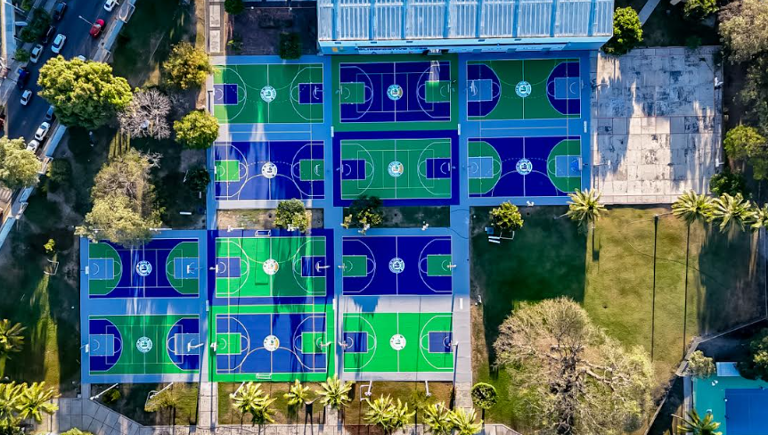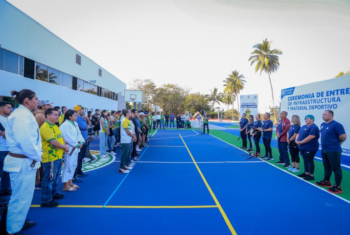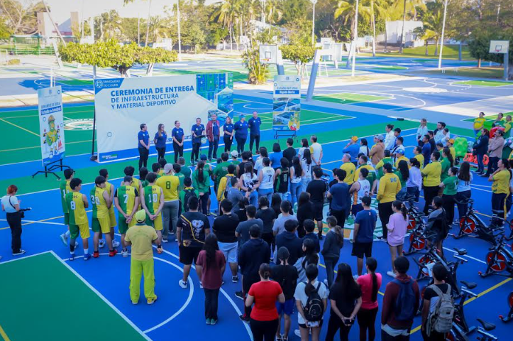 Las renovaciones incluyen la reposición del concreto, el mantenimiento a tableros, postes y aros de basquetbol, así como mantenimiento del pasto sintético en el caso de la cancha de futbol rápido, aplicación de pintura, logotipos e iluminación. En cuanto al equipo entregado, son bicicletas, ledes, jabalinas y material para handball y karate.