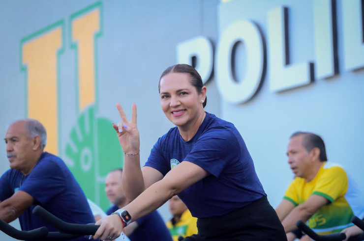 Como parte de la entrega de estos espacios y material deportivo, las funcionarias y funcionarios hicieron una práctica intensa y breve de spinning en las nuevas bicicletas fijas.