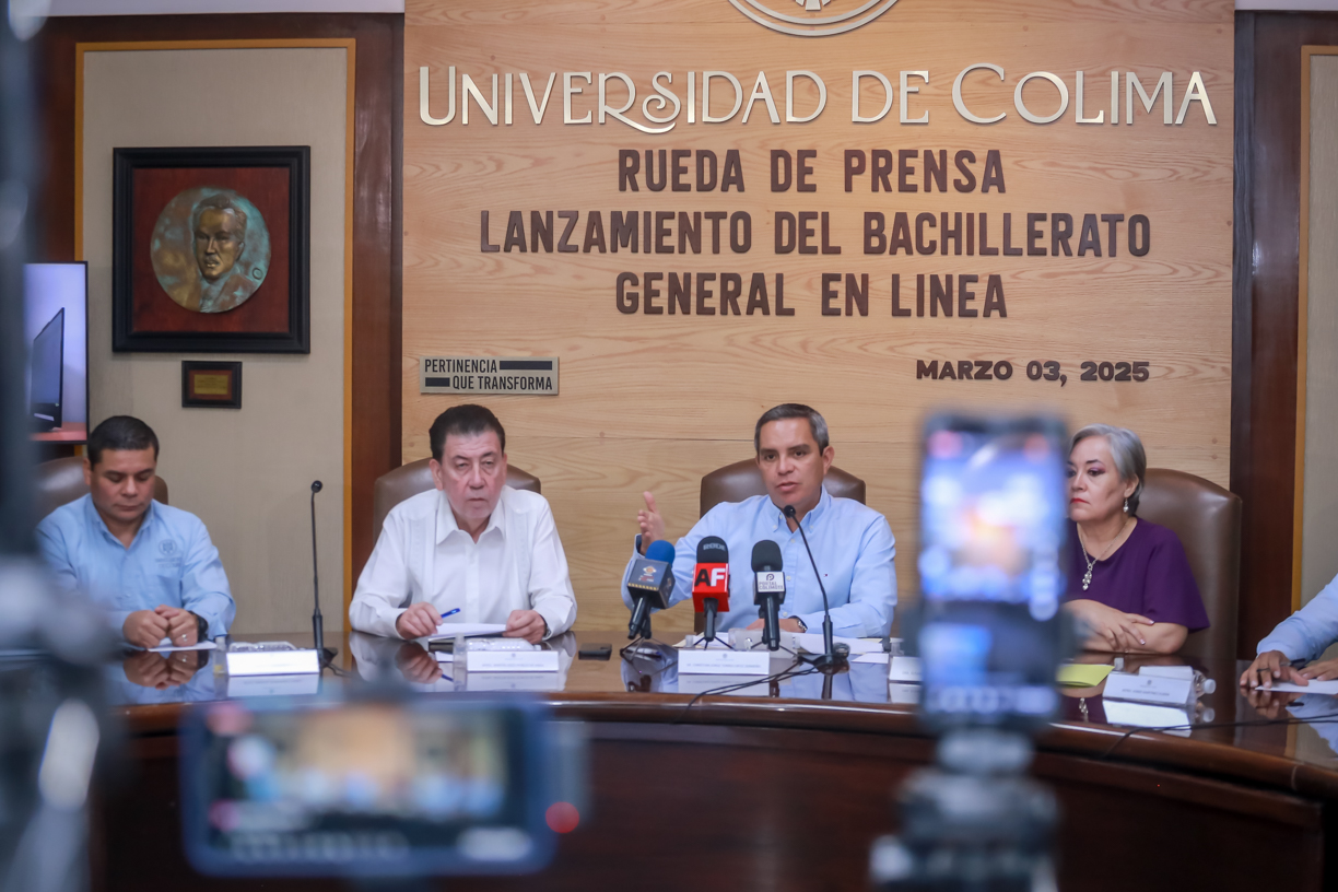 Este lunes, en rueda de prensa celebrada en la Sala de Juntas de la Rectoría, Christian Torres Ortiz Zermeño, rector de la Universidad de Colima (UdeC) anunció el lanzamiento de la convocatoria para aspirantes al nuevo Bachillerato General en Línea. Con este programa, pionero de su tipo en los bachilleratos del país, dijo el rector, la casa de estudios busca contribuir a evitar el rezago y ampliar la cobertura educativa estatal y en el país.