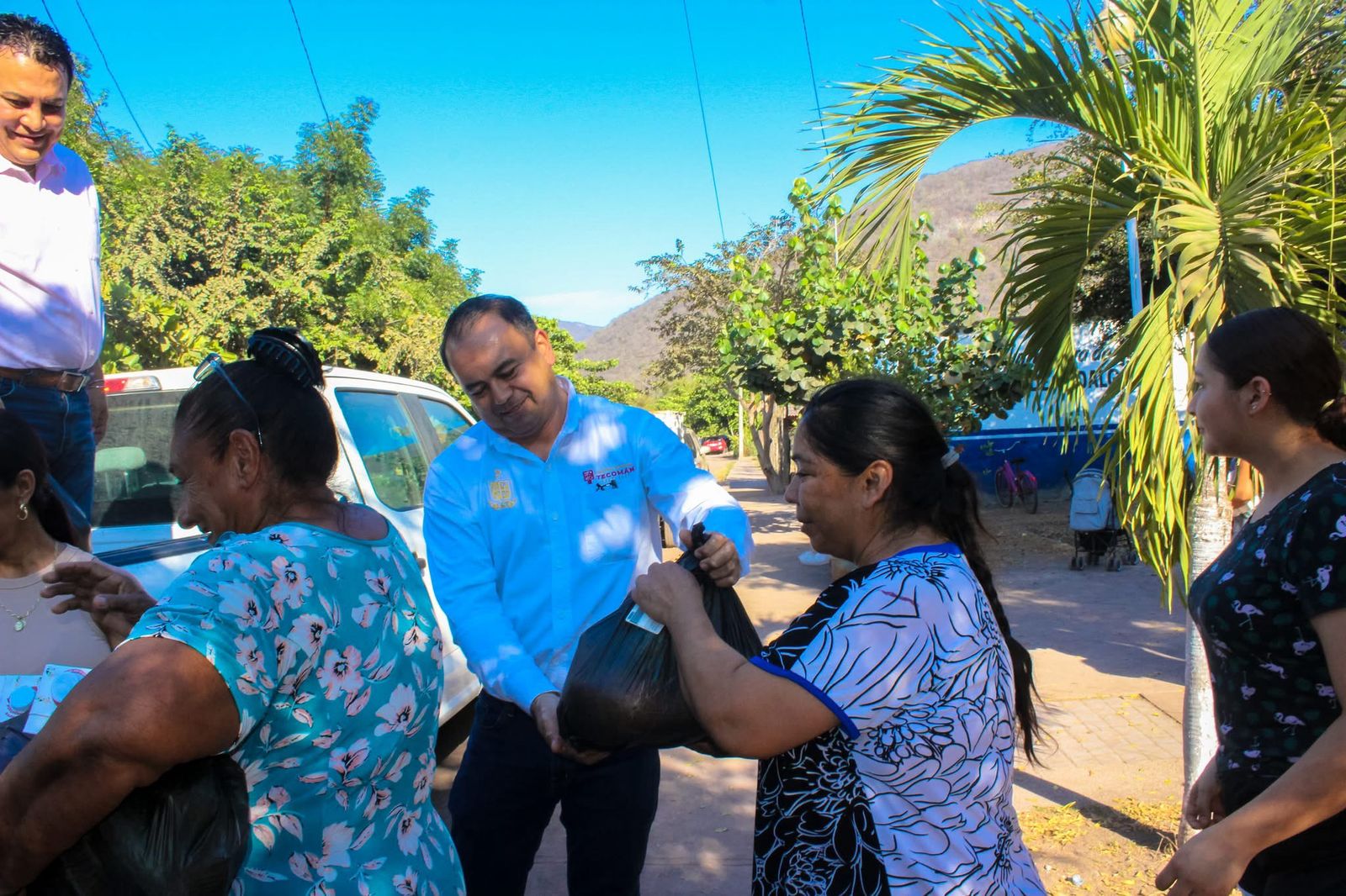 El Presidente Municipal de Tecomán, Armando Reyna, acompañado por su esposa, la Presidenta del DIF Municipal, Mili Cuevas, y el equipo del DIF Tecomán, realizaron la entrega de más de 80 despensas a las familias y vecinos de la Comunidad Cofradía de Hidalgo.