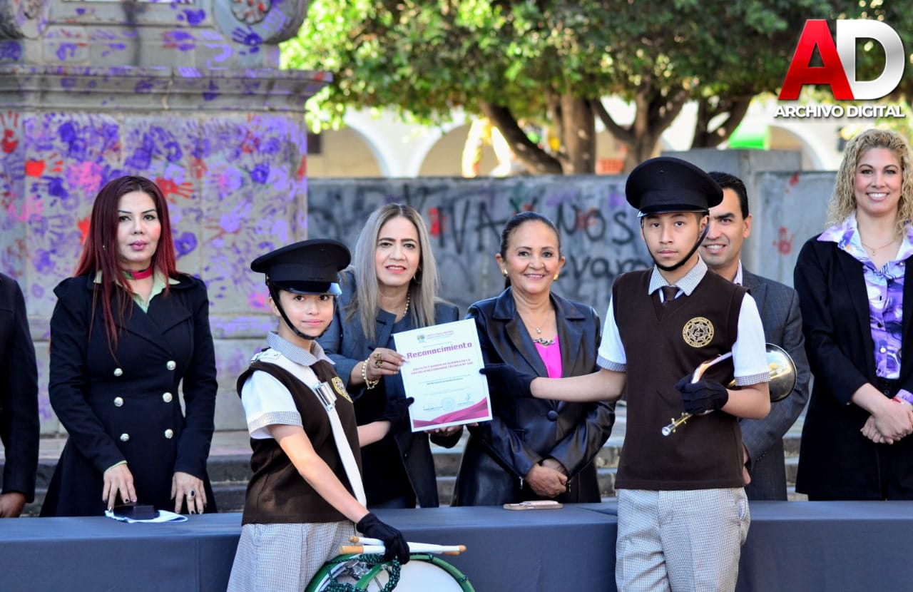 Para finalizar ceremonia, el Gobierno Municipal entregó reconocimientos a las escoltas y bandas de guerras participantes por su dedicación y pasión que enaltecen los valores que unen a la sociedad.