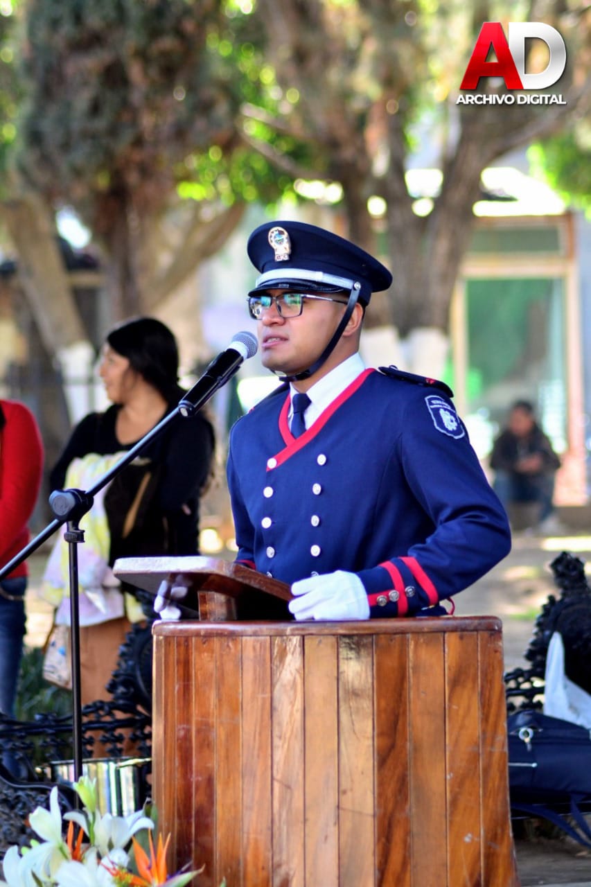 Como parte del programa, el estudiante Ángel Iván Peña Silva del Tecnológico Nacional de México, campus Ciudad Guzmán, declamó una poesía dedicada a las bandas de guerra, resaltando su valentía, disciplina y amor por la patria.