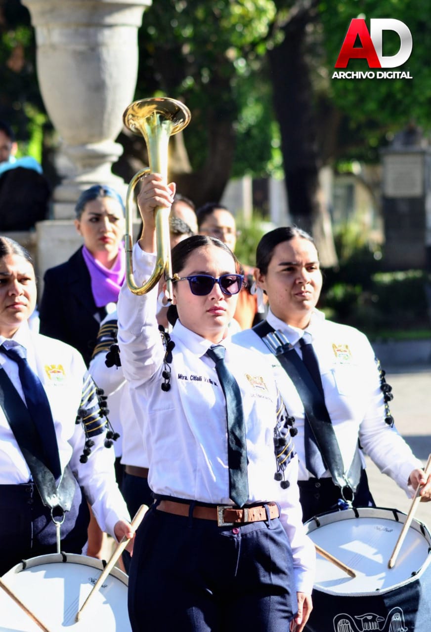 Autoridades del Gobierno de Zapotlán el Grande conmemoraron el Día Nacional de las Bandas de Guerra (10 de marzo) en ceremonia cívica celebrada en el Jardín Principal, con la participación de bandas de guerra y escoltas de diversas instituciones educativas, que reafirmaron su profundo sentido de disciplina, valor cívico y respeto a los símbolos patrios.