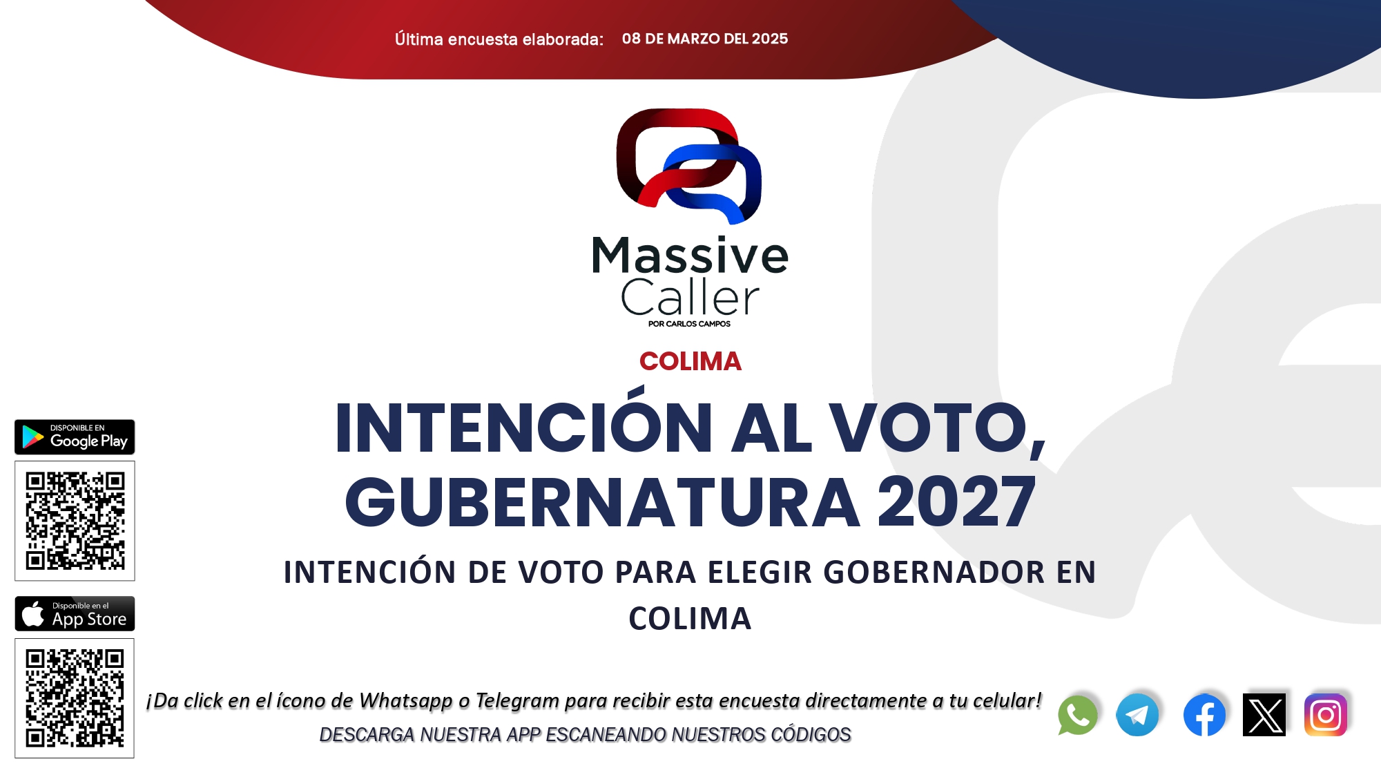 Luego de que la empresa de estudios de opinión Massive Caller, hiciera pública una encuesta realizada durante el mes de marzo de 2025, la actual presidenta municipal de Manzanillo, Rosi Bayardo Cabrera y el partido Morena encabezan las preferencias de la ciudadanía para la renovación de la gubernatura en el 2027.