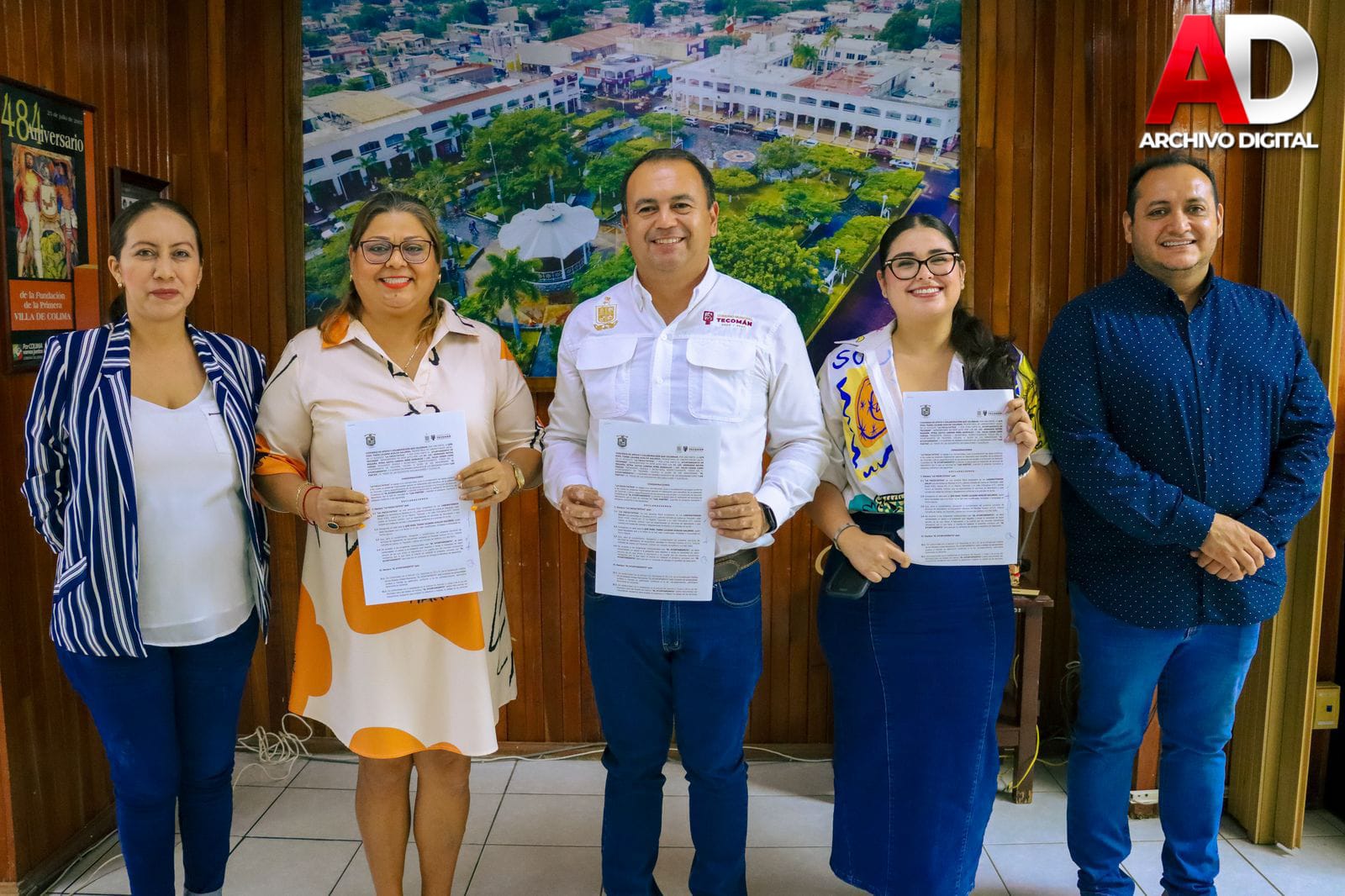Hoy jueves, el presidente municipal de Tecomán, Armando Reyna Magaña, llevó a cabo la firma de un convenio de apoyo y colaboración de parte del Gobierno Municipal de Tecomán con Laboratorios GALAV.