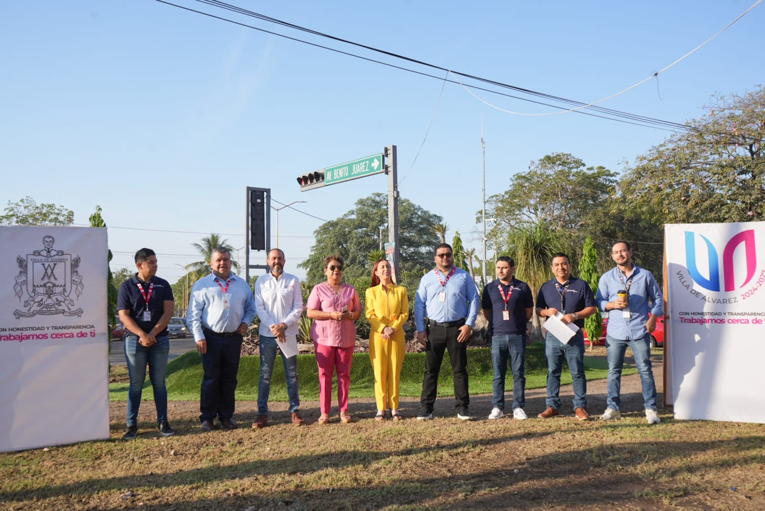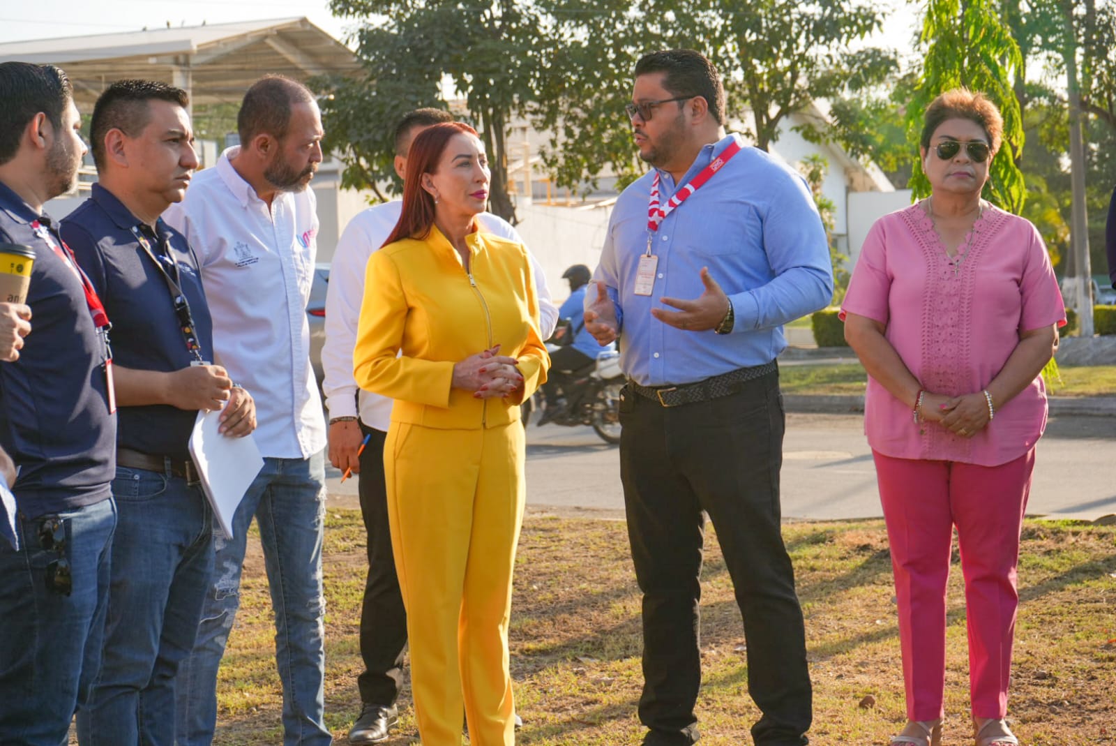 La Presidenta Tey Gutiérrez Andrade y directivos de Tiendas Oxxo en Colima, entregaron la obra de embellecimiento del camellón en la parte sur de la avenida Benito Juárez, a la altura de la planta Liconsa, conocida como “La Lechera”.