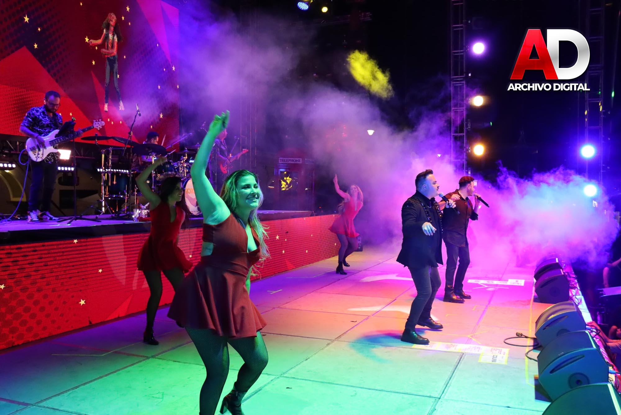 El grupo Vino Tinto, abrió la velada haciendo bailar a los asistentes con su contagiante ritmo, seguido de la impresionante presentación de Andrés Santana y su Ballet, quienes deleitaron al público con un espectáculo lleno de danza y ritmos vibrantes. La noche continuó con la frescura musical del grupo Acústica.
