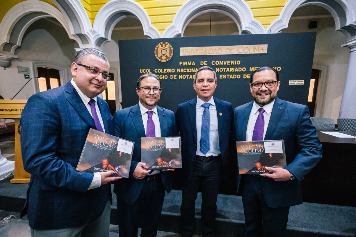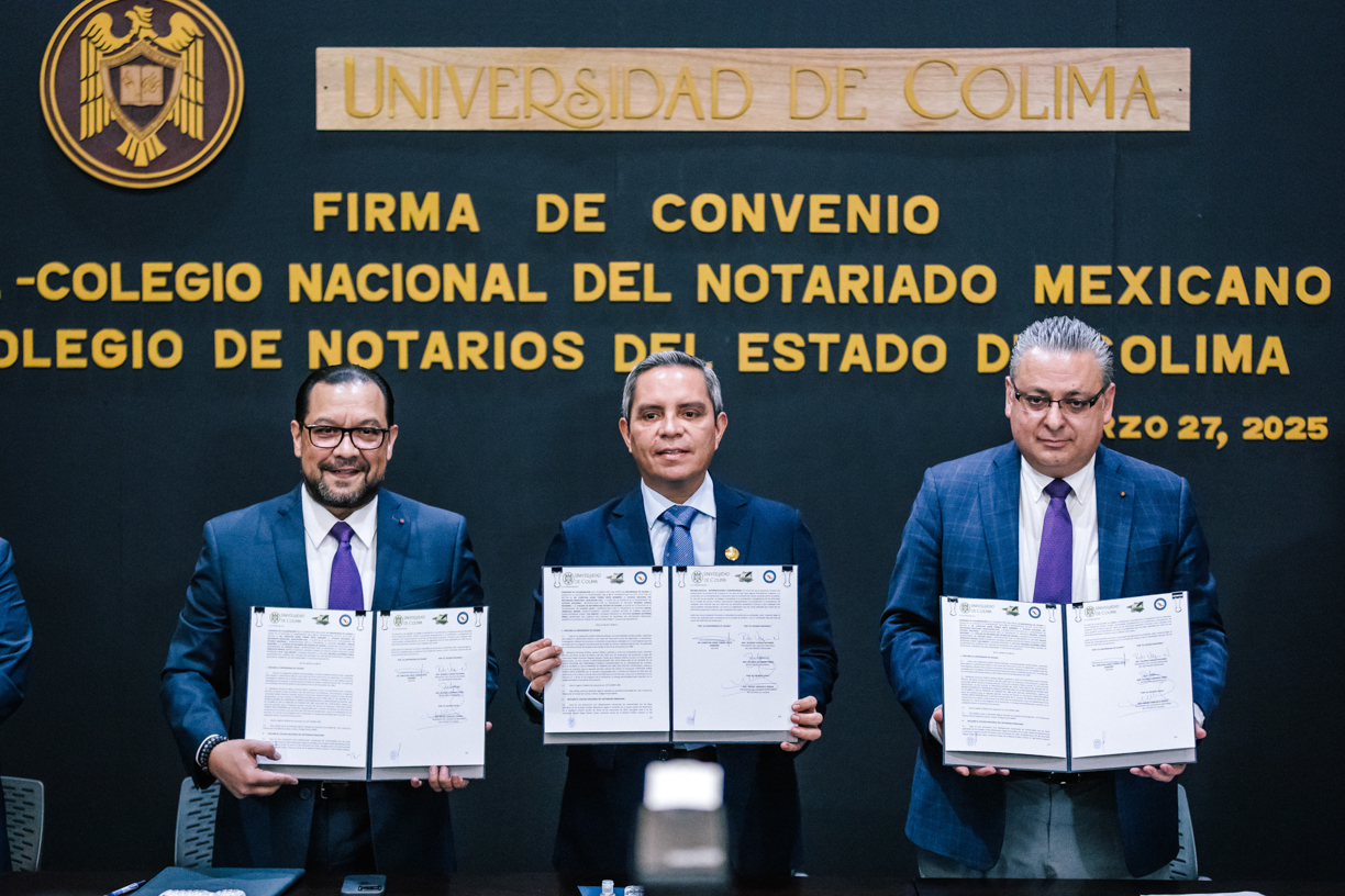 La firma estuvo a cargo del Dr. Christian Jorge Torres Ortiz Zermeño, rector de la Universidad de Colima; el Lic. Ricardo Vargas Navarro, presidente del Colegio Nacional del Notariado Mexicano, y del Lic. Rafael Verduzco Cepeda, presidente del Colegio de Notarios del Estado de Colima.