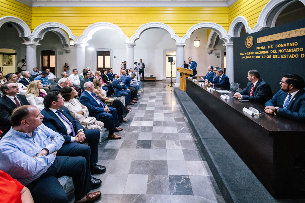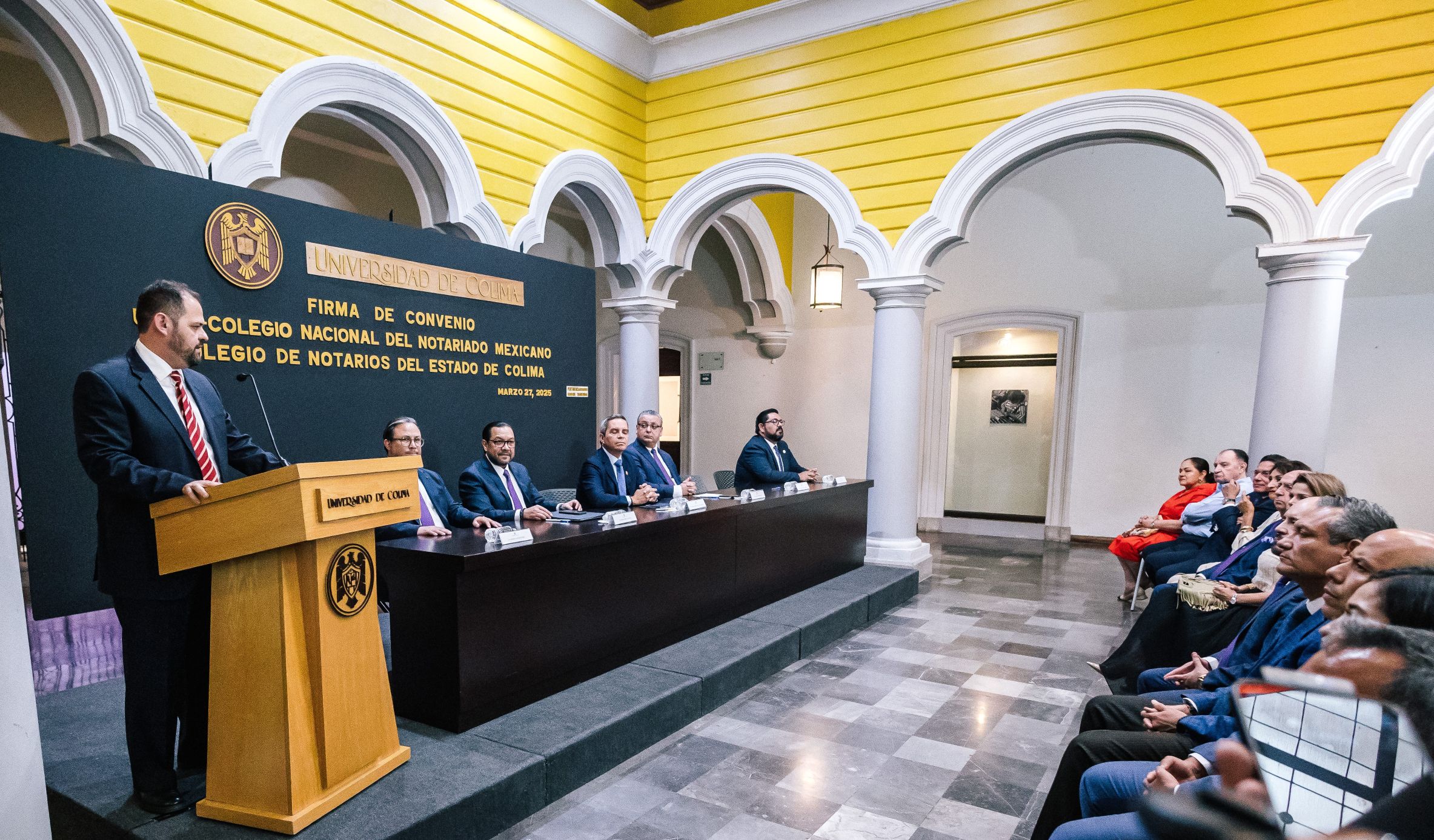 En un evento realizado este jueves a las 6 de la tarde en el Salón del Vitral de la Pinacoteca Universitaria, se llevó a cabo la firma de un importante convenio de colaboración entre la Universidad de Colima, el Colegio Nacional del Notariado Mexicano y el Colegio de Notarios del Estado de Colima. La ceremonia reunió a autoridades universitarias, representantes del gremio notarial y funcionarios del gobierno estatal.