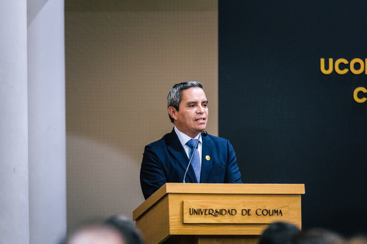 Reconoció el papel de la Universidad de Colima en la formación de destacados notarios y reafirmó el compromiso del gremio para seguir colaborando en la preparación del notariado colimense. “Es fundamental tener un notariado unido en el país y en cada una de las entidades”. A las y los estudiantes de Derecho les propuso que trabajen en una notaría: “Aprenderán orden, disciplina y amor por el derecho. Los notarios estarán ahí para aconsejarles y dirigirles”, señaló.