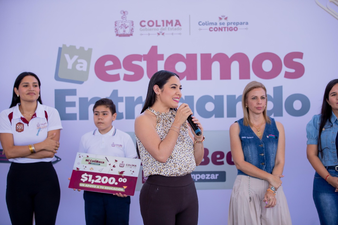 La mandataria colimense indicó que desde el Gobierno del Estado se ha buscado complementar las acciones que ya realiza el Gobierno de México; es por eso que Mi ColiBeca para Empezar inició con estudiantes de los niveles preescolar y primaria, pues en secundarias se les entrega una computadora gratuita y en preparatoria el gobierno federal les otorga otra beca.
