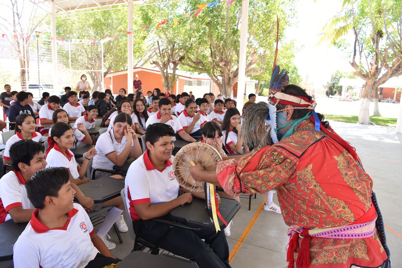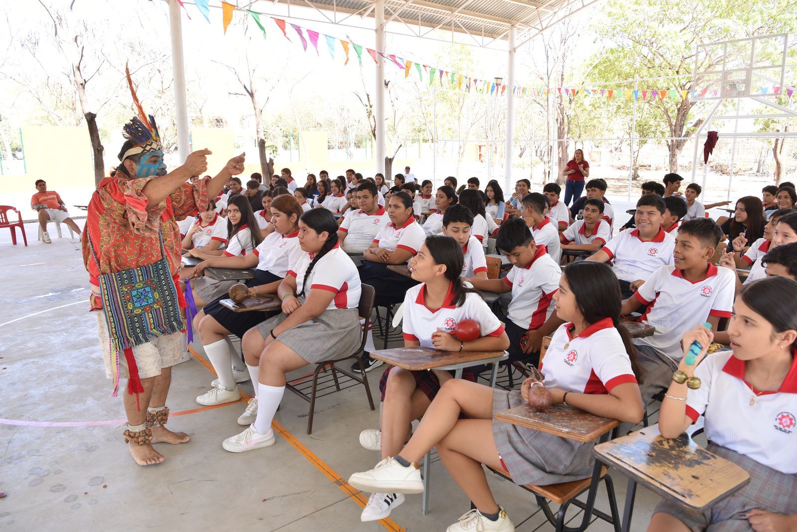 Las y los estudiantes de dicho plantel educativo, disfrutaron de la presentación de ‘El señor del agua’, una narración escénica en cuatro tiempos que relata la historia de la creación del dios mexica Tláloc y sus ayudantes, los tlaloques.
