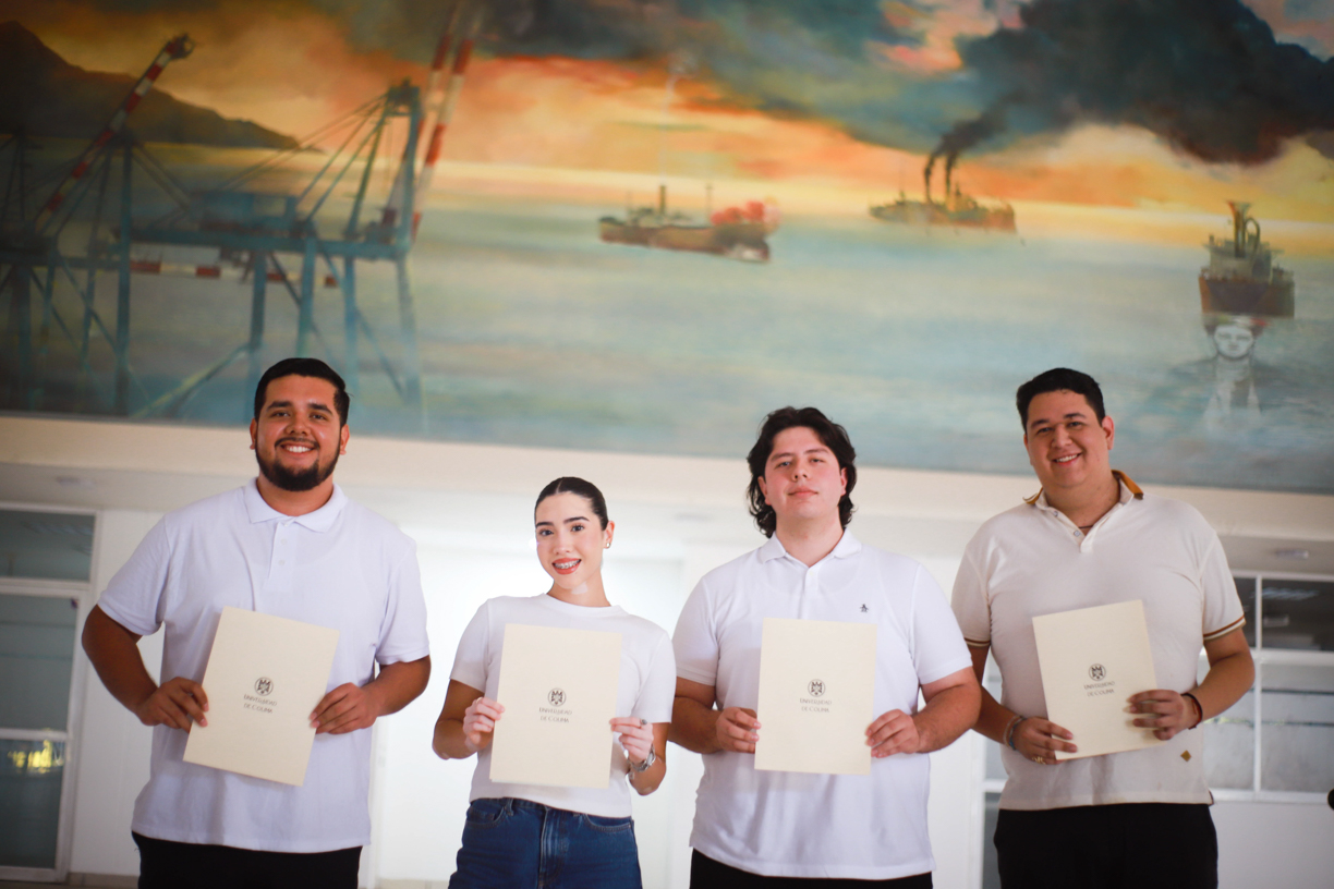 En una emotiva ceremonia realizada en días recientes, la Universidad de Colima, a través de su Facultad de Comercio Exterior, entregó constancias de práctica profesional internacional a estudiantes de la Licenciatura en Comercio Exterior del campus Valle de las Garzas, en Manzanillo.