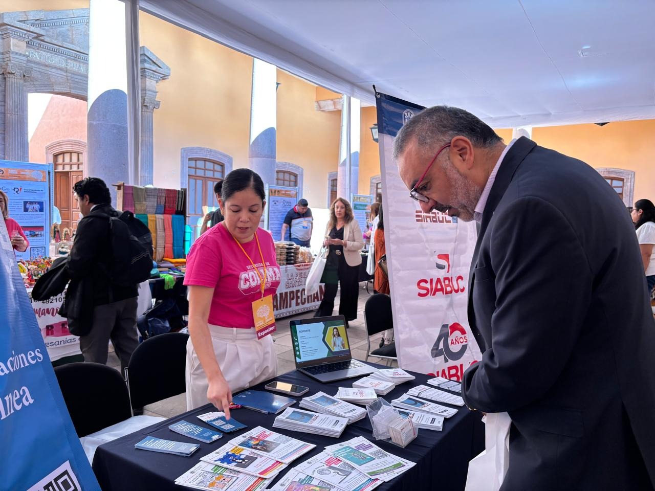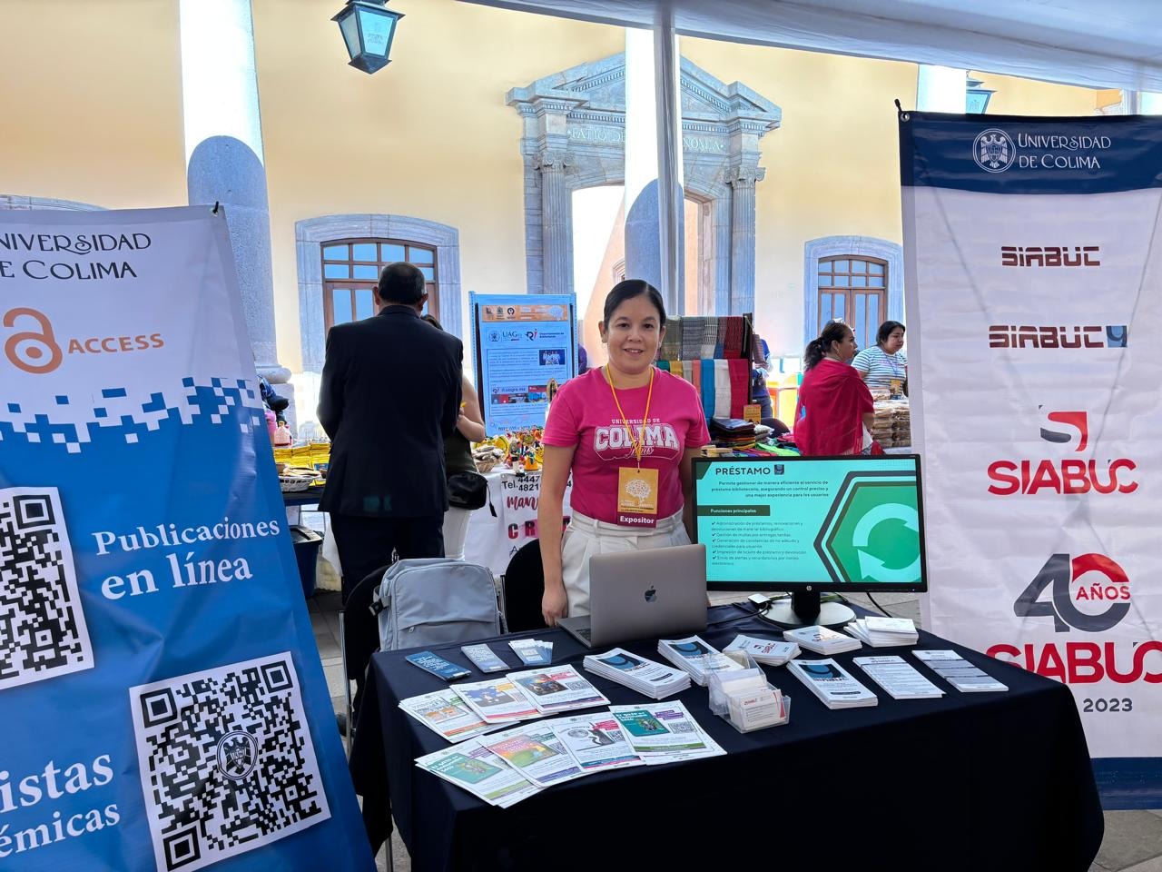 Durante ambas jornadas, Adriana Barreda atendió el stand de la Universidad, con el objetivo de promover el Sistema Integral Automatizado de Bibliotecas de la Universidad de Colima versión 9 (SIABUC9) y difundir el catálogo digital de la Dirección General de Publicaciones.