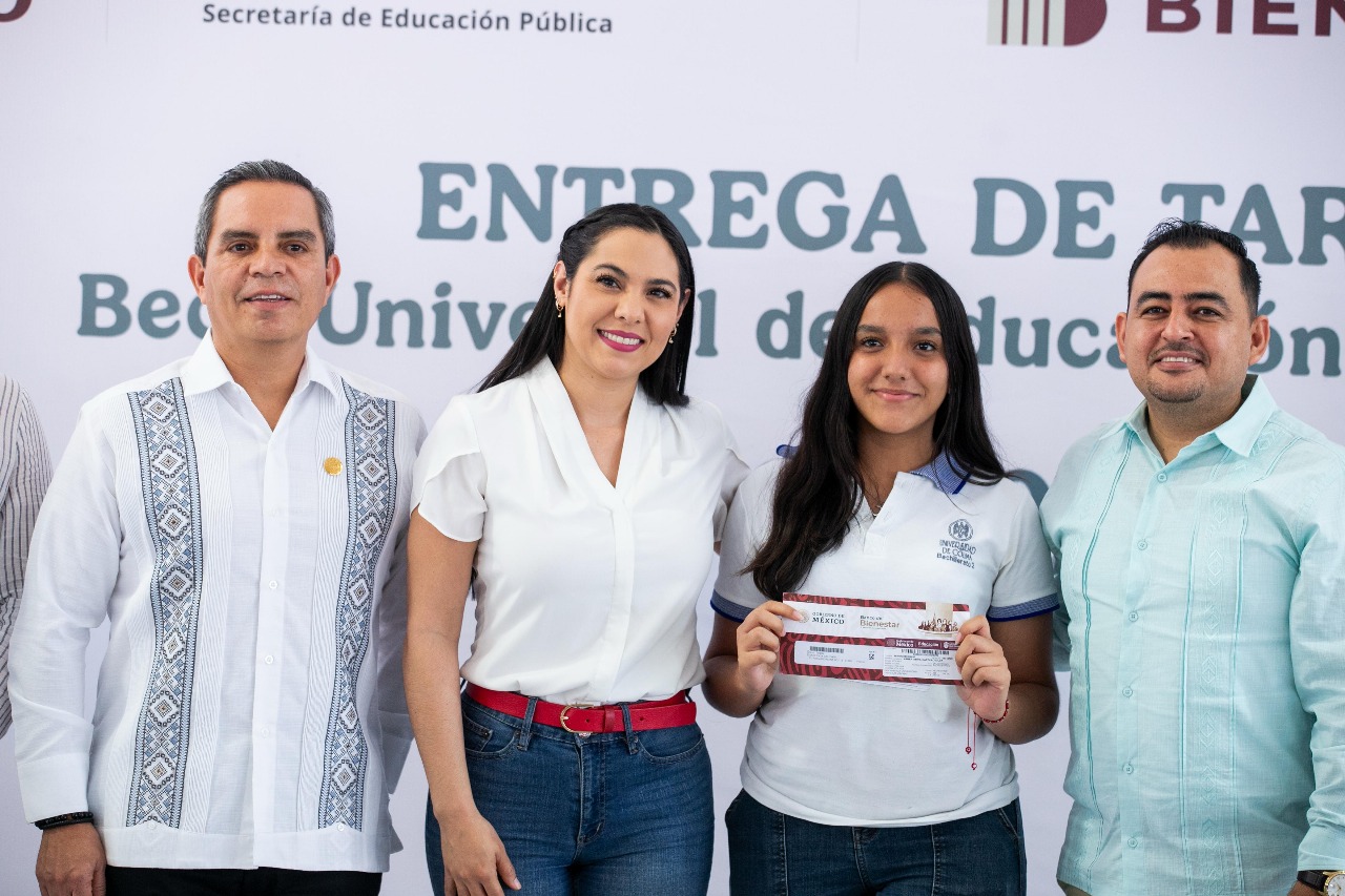 María del Rosario Silva Verduzco, delegada de Programas para el Bienestar en Colima, recordó que esta beca inició en el sexenio del expresidente de México, Andrés Manuel López Obrador, y que ahora continúa con la presidenta Claudia Sheinbaum Pardo, quien creó, además, la beca ‘Rita Cetina’ que actualmente se entrega a secundarias, y que gradualmente llegará a estudiantes de primarias y preescolares públicos.