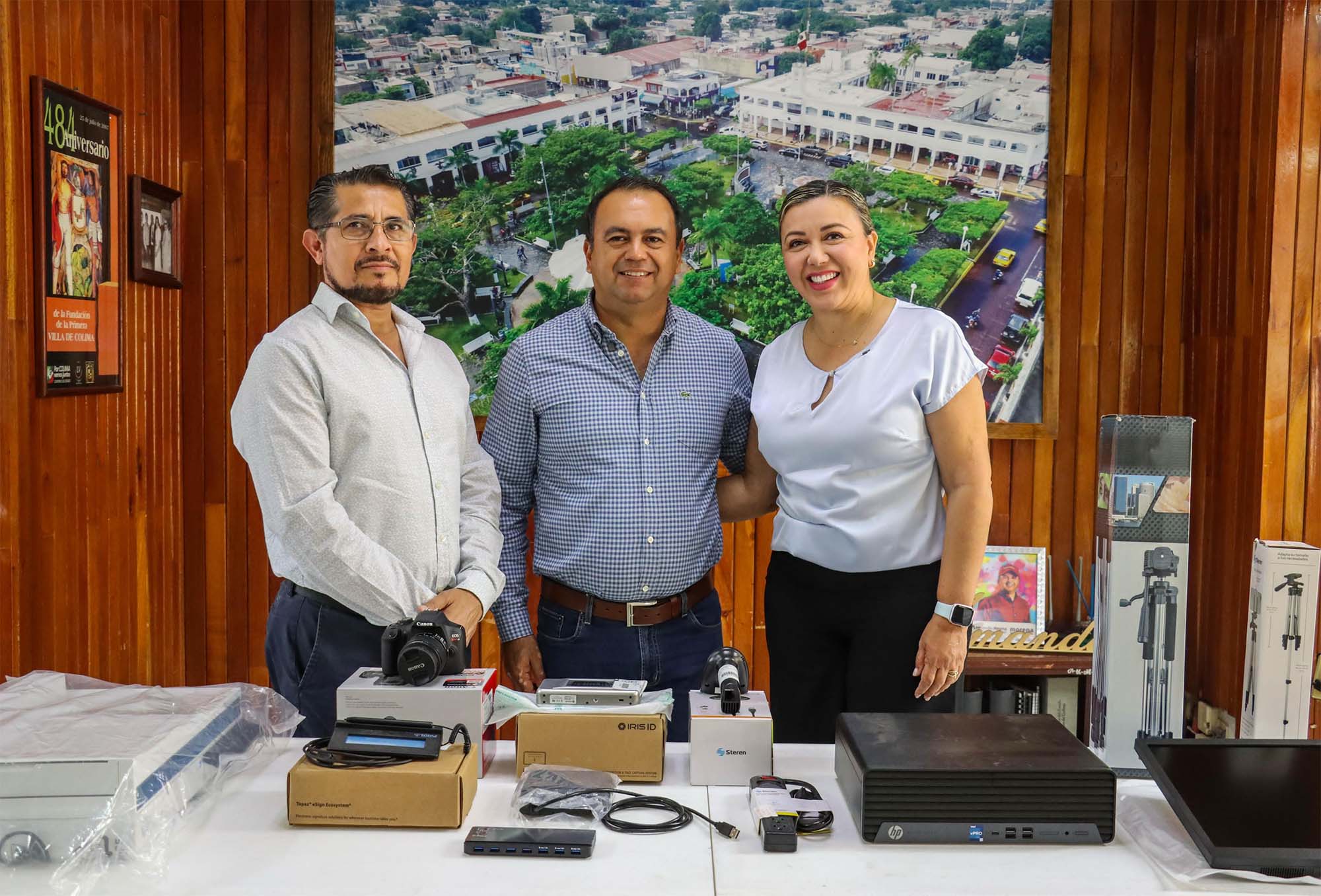 Este jueves, la Dra. Brenda del Carmen Gutiérrez, titular del Registro Civil del Estado de Colima, entregó equipo electrónico al presidente municipal de Tecomán, Armando Reyna Magaña, para optimizar los trámites de CURP. Esta acción forma parte de un plan coordinado entre el Gobierno de México y el Gobierno del Estado, con el objetivo de garantizar la certeza e identidad jurídica de las y los ciudadanos.