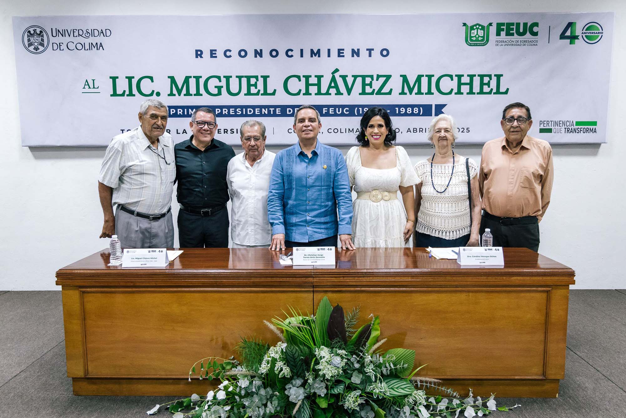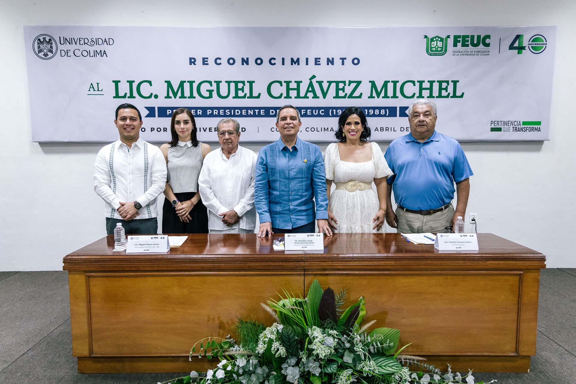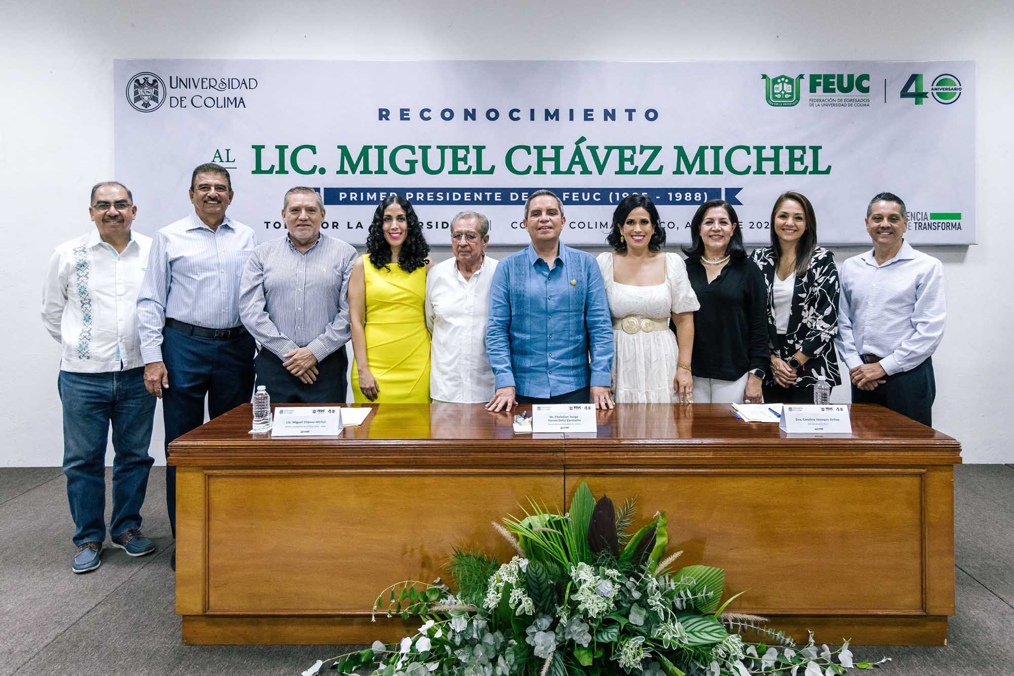 En el marco de los 40 años de vida de la Federación de Egresados de la Universidad de Colima (FEUC), este miércoles por la tarde se realizó un emotivo homenaje a quien fue uno de los fundadores y primer presidente de esta federación (1985-1988), Miguel Chávez Michel. La ceremonia, a la que acudieron exrectores, historiadores, cronistas, funcionarios universitarios, docentes y amigos y familiares del homenajeado, se realizó en uno de los auditorios del Archivo Histórico de la Universidad de Colima (UdeC), edificio primigenio de esta casa de estudios.