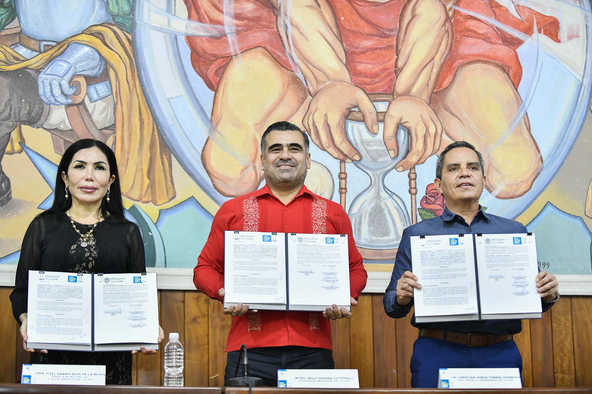 El acuerdo fue firmado por el rector de la Universidad de Colima, Dr. Christian Jorge Torres Ortiz Zermeño, y el presidente municipal, Mtro. Riult Rivera Gutiérrez, acompañados por integrantes de sus respectivos equipos de trabajo.