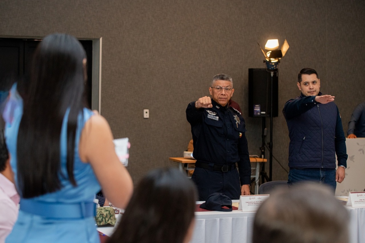 Indira Vizcaíno tomó protesta al contralmirante Gerardo Romero Santana, secretario de Seguridad Pública, como integrante de este órgano; posteriormente, las y los integrantes del Consejo eligieron a las alcaldesas de Cuauhtémoc y Manzanillo, Ma Guadalupe Solís Ramírez y Rosa María Bayardo Cabrera respectivamente, como representantes del estado ante la próxima Conferencia Nacional de Seguridad Pública Municipal.