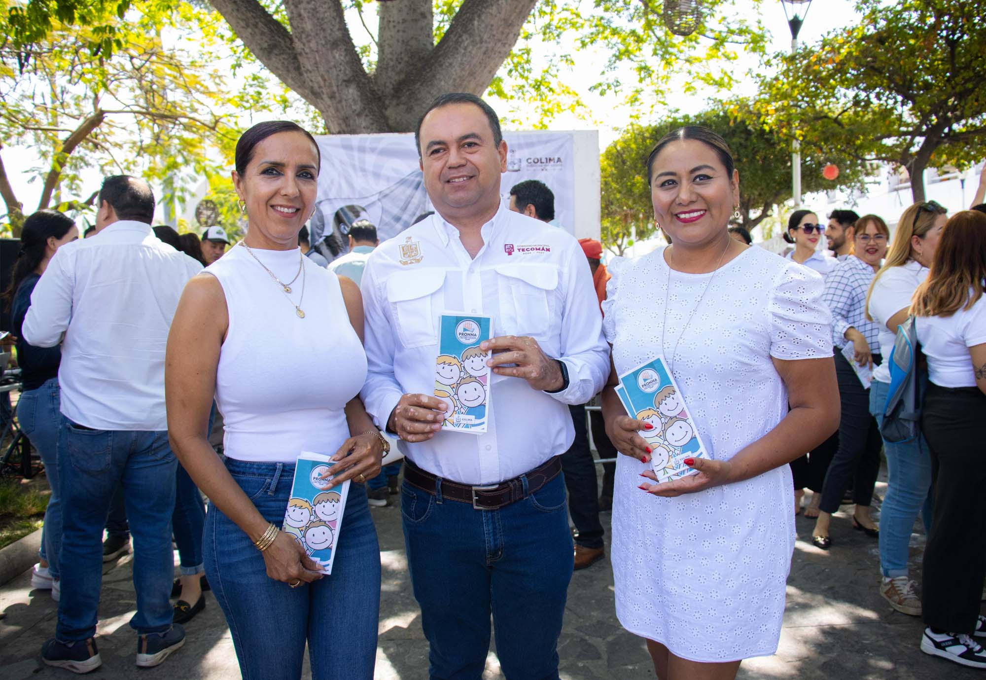 Este viernes, el presidente municipal de Tecomán, Armando Reyna Magaña, acompañado de su esposa, Mili Cuevas, presidenta del DIF Municipal de Tecomán, y de la Lic. Norma Araceli Carrillo Ascencio, Procuradora de Protección de Niñas, Niños y Adolescentes del Estado de Colima, encabezó la Jornada por La Paz en el Jardín Principal de Tecomán.