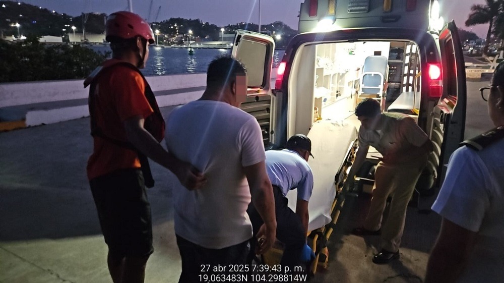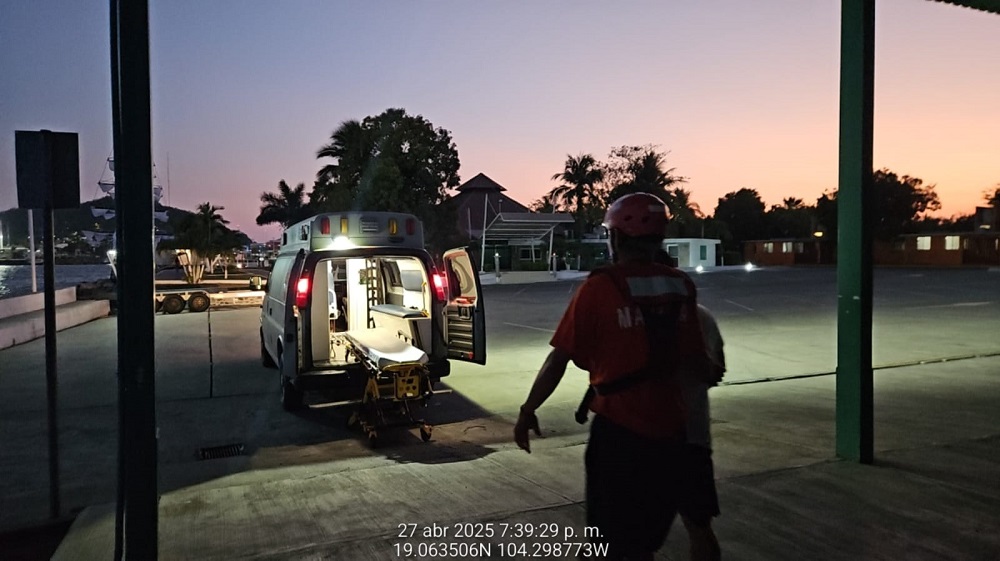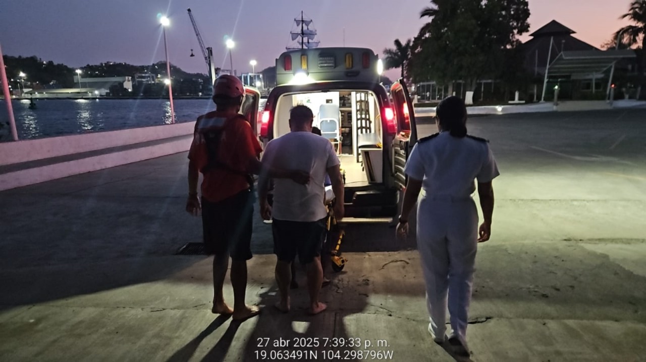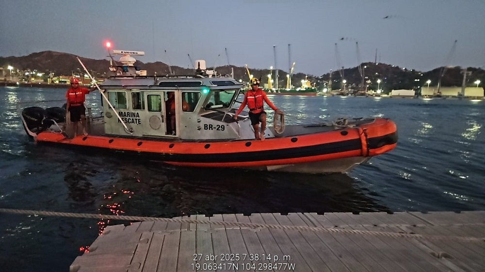 Lo anterior, se llevó a cabo durante un recorrido de vigilancia marítima, en el cual, elementos de esta Institución, a bordo de una embarcación tipo Defender, localizaron a una persona del sexo masculino de 54 años en peligro de ahogamiento, por lo que, con el objetivo de salvaguardar la vida humana en la mar, se desplegaron dos nadadores de rescate, quienes la socorrieron, para posteriormente trasladarla a puerto seguro, donde personal de Sanidad Naval, le brindó valoración médica y primeros auxilios.