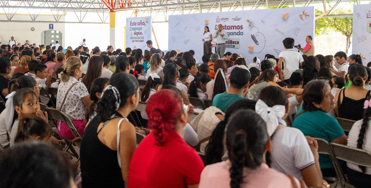 Este viernes, en el Casino de los Burócratas en Villa de Álvarez, 2 mil 664 estudiantes de trece escuelas primarias públicas de este municipio reciben sus tarjetas de pago Mi ColiBeca para Empezar por parte del Gobierno del Estado de Colima, que es un apoyo de mil 200 pesos, correspondientes a los bimestres de enero-febrero, marzo-abril y mayo-junio.