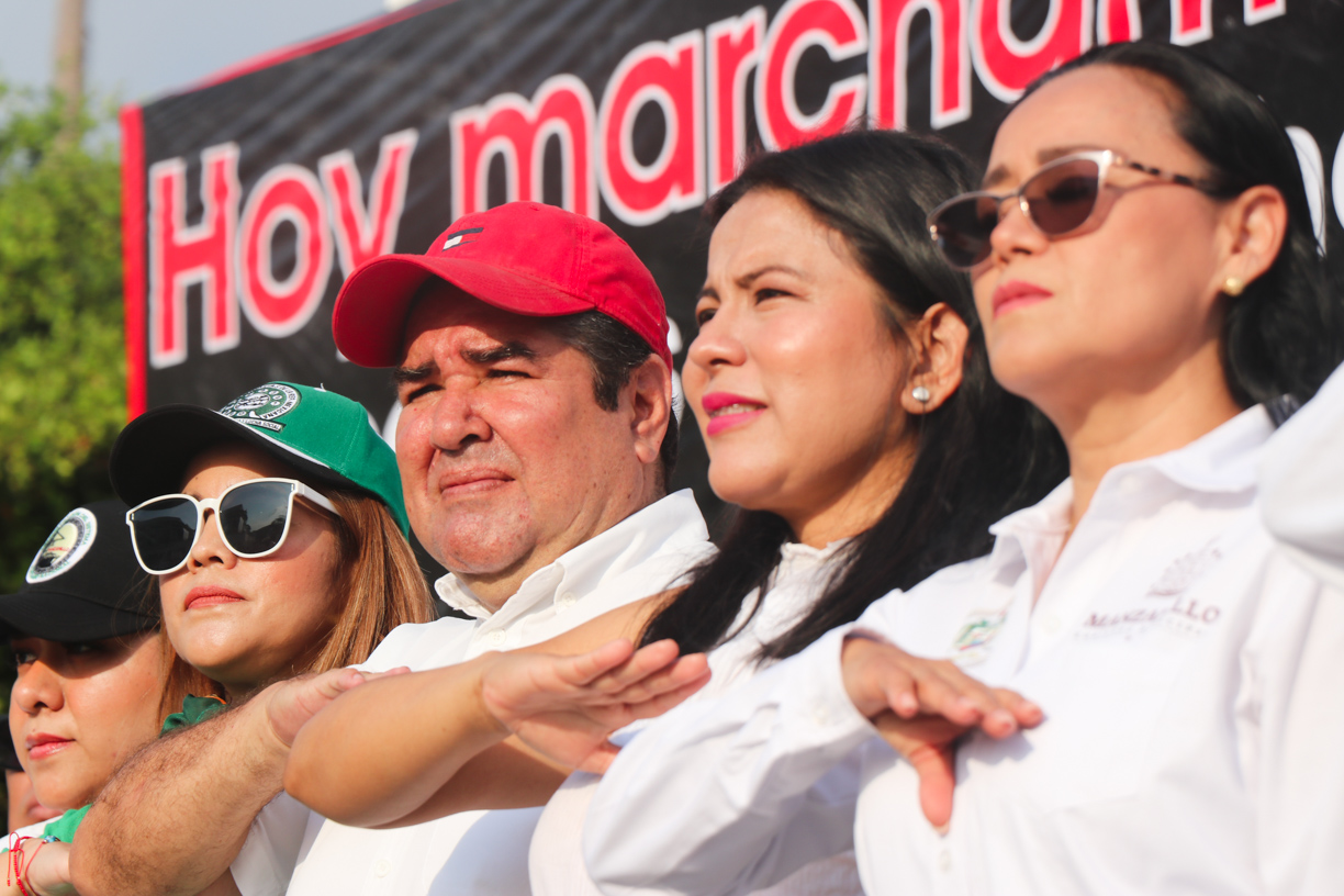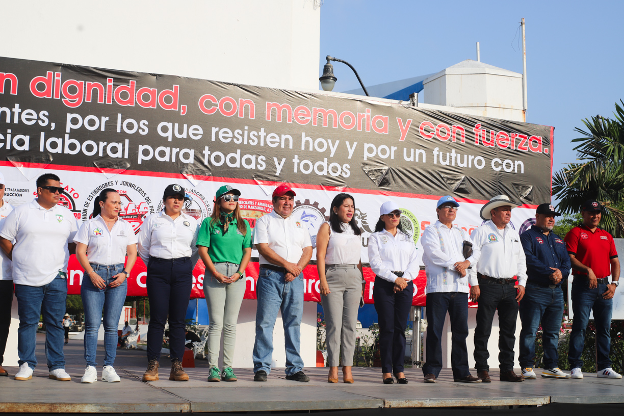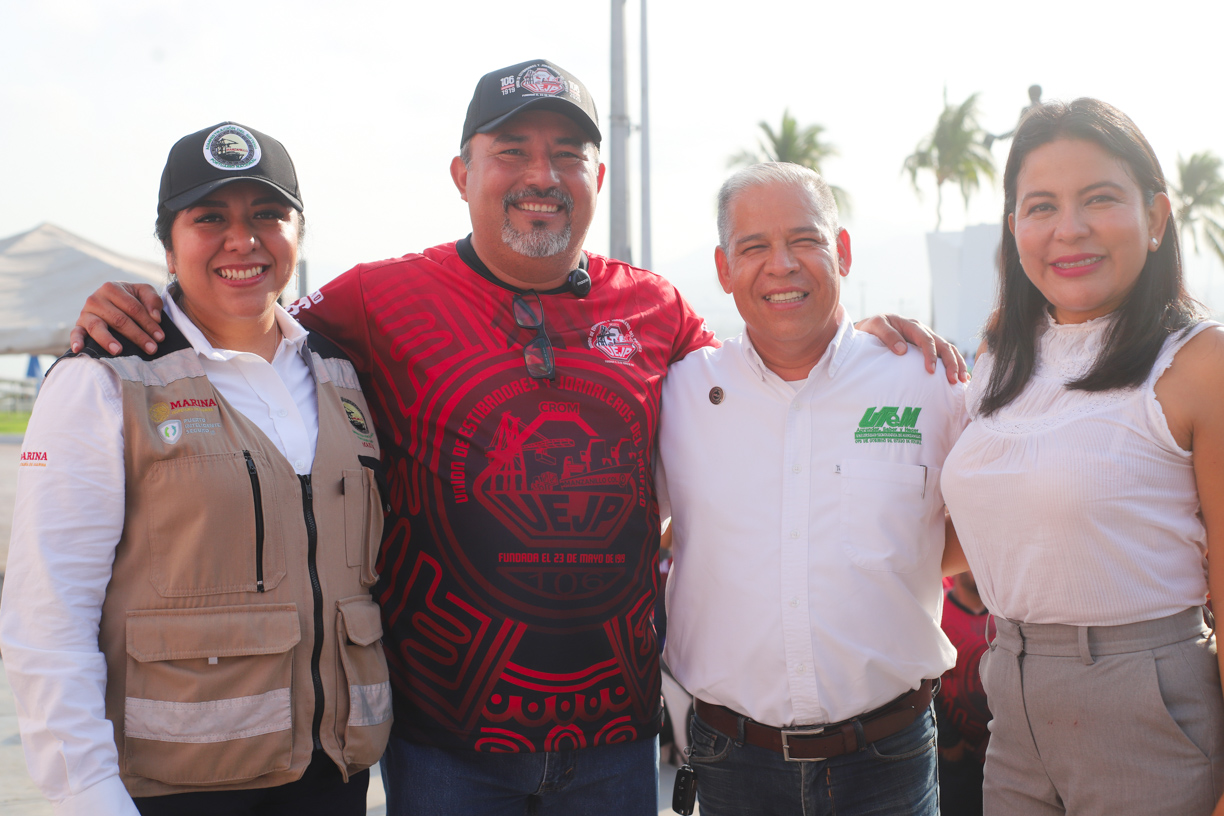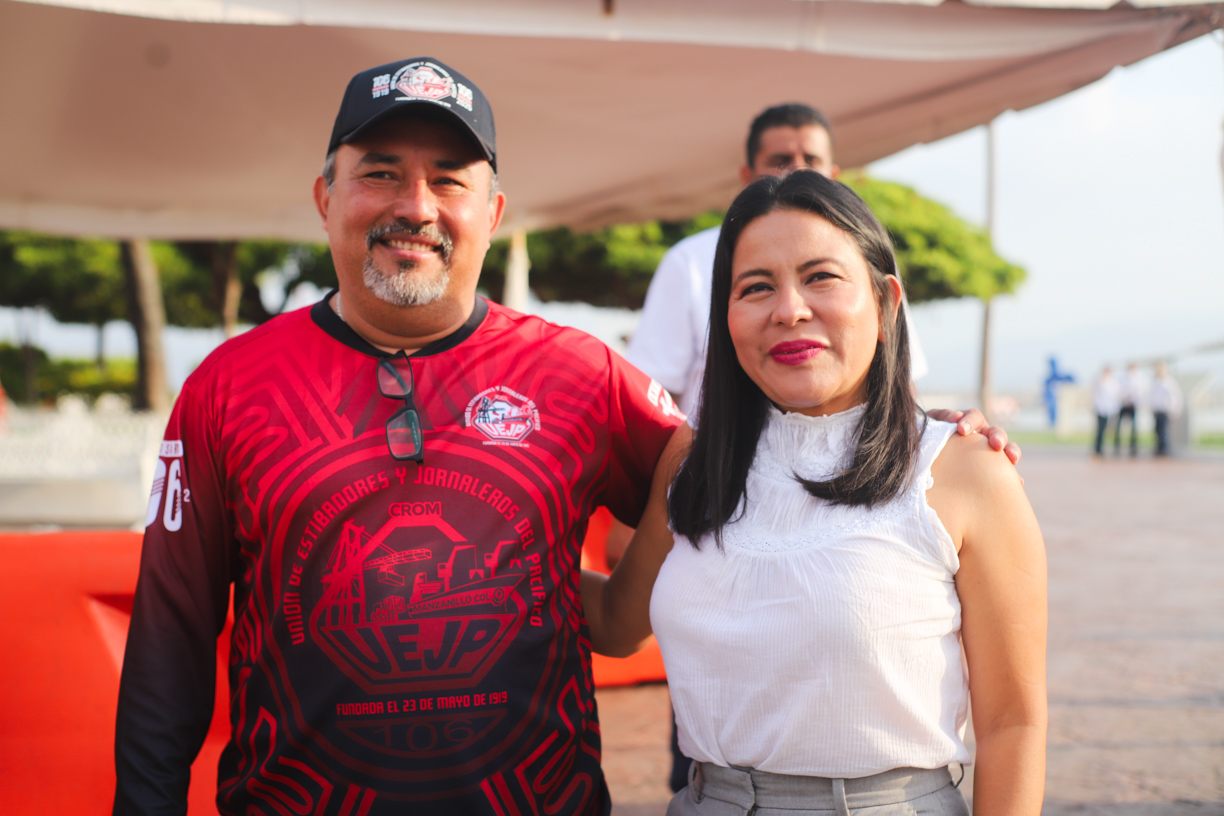 Ana María Gallardo Vázquez, delegada de la Universidad de Colima en Manzanillo, en representación del rector Christian Jorge Torres Ortiz Zermeño, asistió a la ceremonia cívica realizada a un costado del Pez Vela, en un acto encabezado por Héctor Gustavo Larios Uribe, presidente de la Unión de Estibadores y Jornaleros del Pacífico (UEJP) CROM Manzanillo.