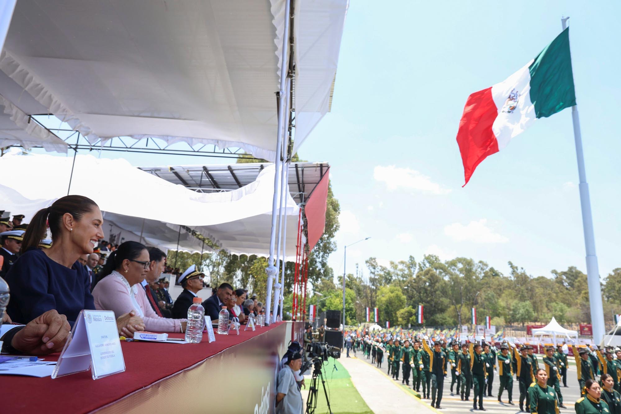 Acompañaron a la Presidenta de México, la secretaria de Gobernación, Rosa Icela Rodríguez Velázquez; el presidente de la Mesa Directiva de la Cámara de Diputados, Sergio Carlos Gutiérrez Luna; el presidente de la Mesa Directiva del Senado, Gerardo Fernández Noroña; el secretario de la Defensa Nacional, general Ricardo Trevilla Trejo; el secretario de Marina, almirante Raymundo Pedro Morales Ángeles; la Jefa de Gobierno de la Ciudad de México, Clara Brugada Molina; el secretario de Seguridad y Protección Ciudadana, Omar García Harfuch.