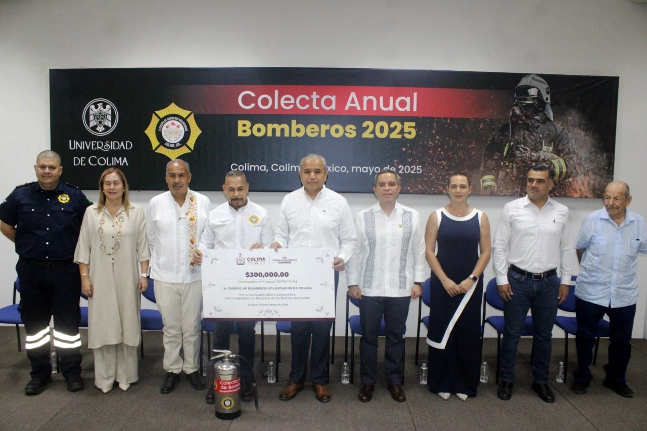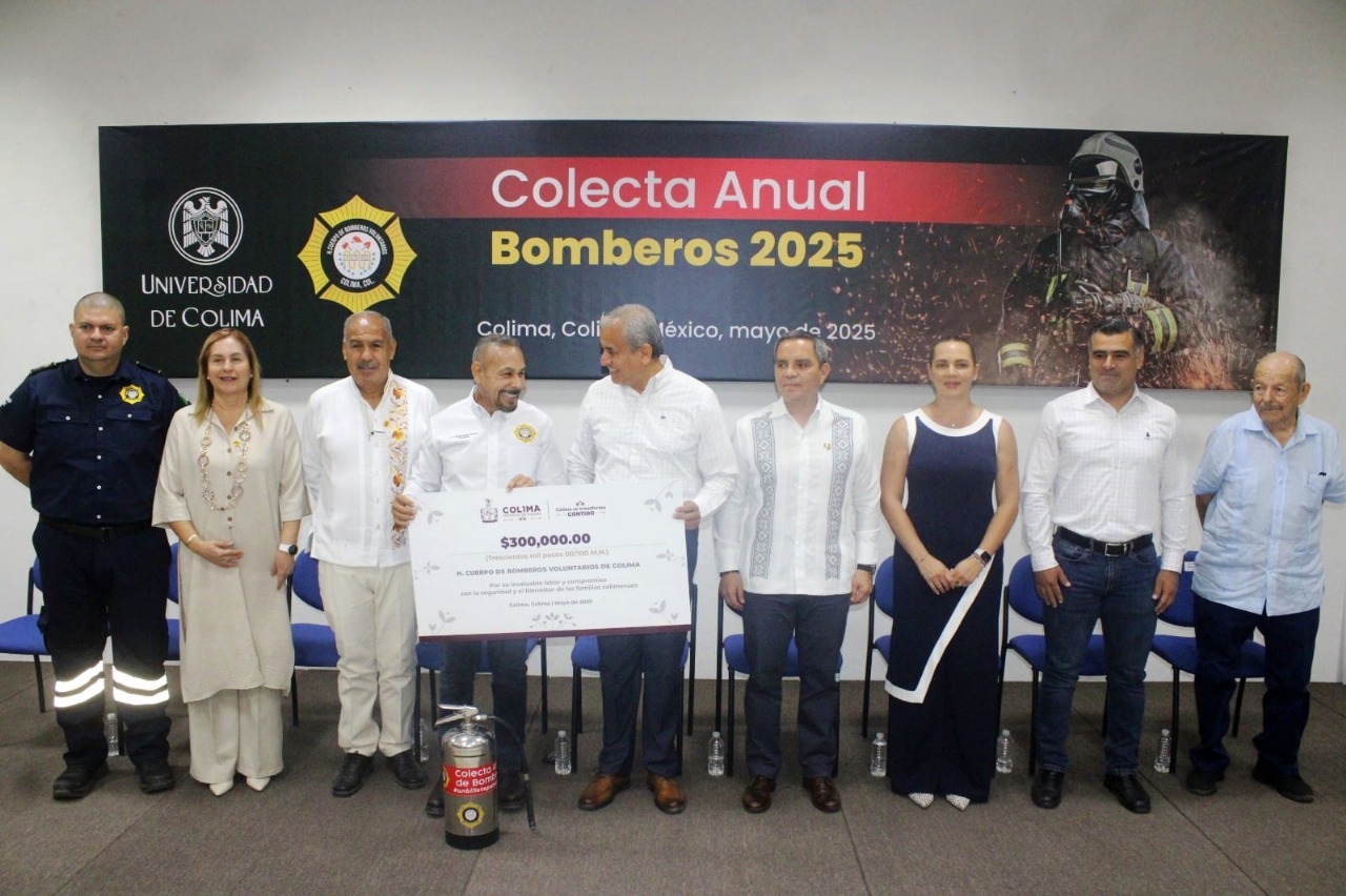El Gobierno del Estado de Colima participó en el arranque de la Colecta Anual 2025 del Heroico Cuerpo de Bomberos, reafirmando su compromiso con esta noble causa, mediante un donativo de 300 mil pesos.