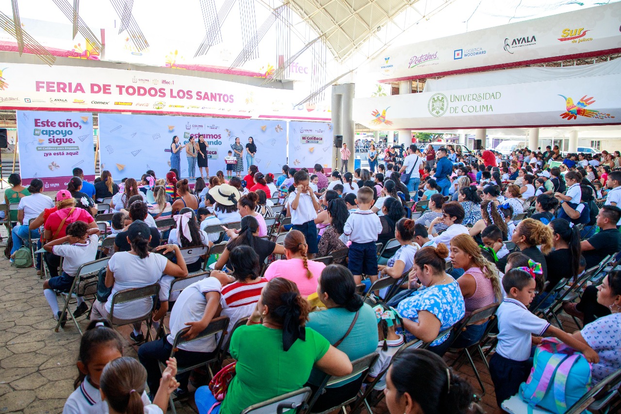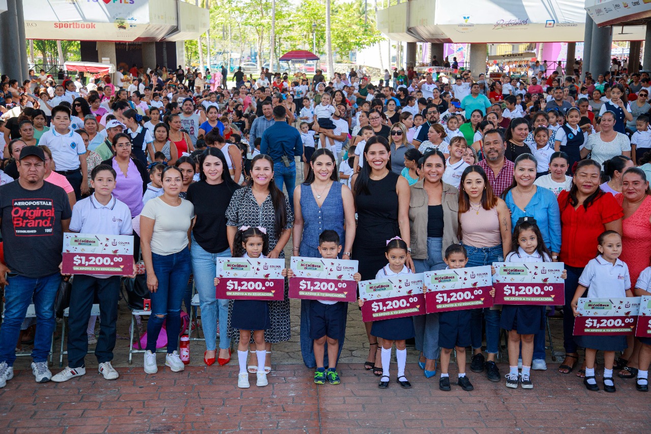 La gobernadora Indira Vizcaíno Silva entregó Mi ColiBeca para Empezar (1,200 pesos) correspondiente a los bimestres enero-febrero, marzo-abril y mayo-junio a 1,216 estudiantes de 36 preescolares y tres primarias públicas del municipio capitalino, de los 3,026 alumnos y alumnas que reciben este apoyo en las tres entregas de este miércoles en las instalaciones de la Feria de Colima.