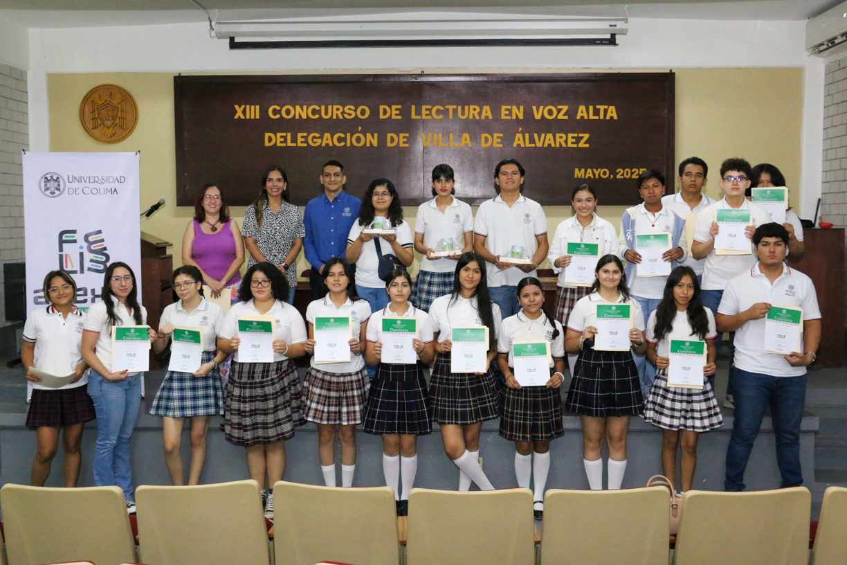 En emocionante concurso celebrado esta semana en el Auditorio de Humanidades de la Delegación Villa de Álvarez de la Universidad de Colima, las estudiantes Erandy Bracamontes Luna, del Bachillerato 33; Karol Mancilla Martín, del Bachillerato 34, y el joven Oscar Daniel Puga, del Bachillerato 12, obtuvieron su pase a la final del XIII Concurso de Lectura en Voz Alta, a celebrarse en próximos días como parte de la edición 27 de la Feria del Libro Universitario Altexto 2025.