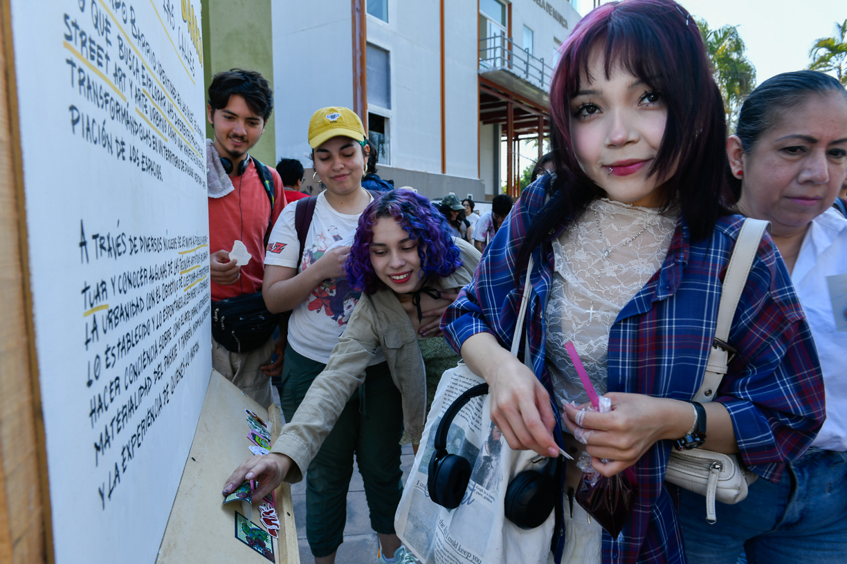 Una vez inaugurada la semana, a unos pasos del Foro Pablo Silva, se inauguró la exposición “Tuneando barrio: Identidad en las calles”, en la explanada universitaria “José Antonio Enciso Núñez”. Allí, la estudiante Adanari González Monroy explicó que éste es un proyecto que busca explorar las diferentes prácticas del Street Art y Arte Urbano como una manifestación estética, transformándolas en un territorio de diálogo, identidad y apropiación de los espacios.