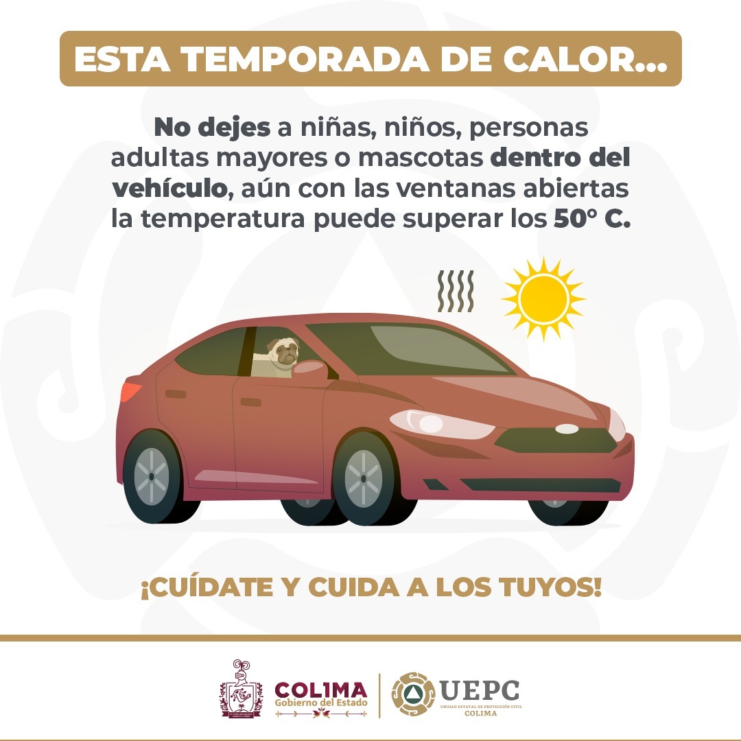 Además, para las personas que cuentan con mascotas de compañía, es importante no sacarlos a pasear durante las horas de mayor intensidad, mantenerlos en lugares fresco y no dejarlos dentro del carro.