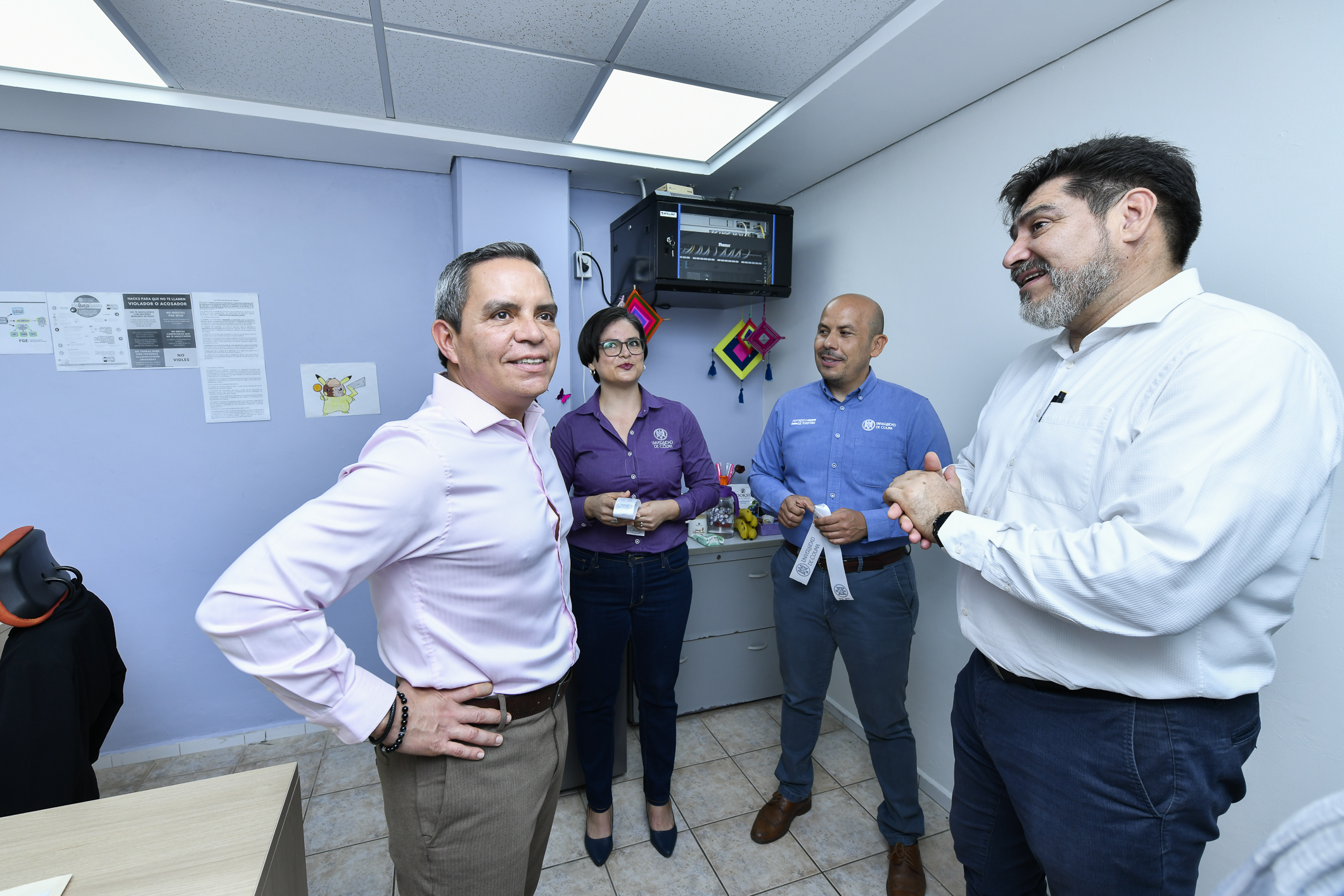 En el corte de listón estuvieron presentes también: Leobardo George Ocón, abogado general, Luz María Urzúa, directora general de Recursos Materiales; Juan Diego Gaytán, delegado del Campus Colima, Mayra González, directora del Centro Universitario para la Igualdad y los Estudios de Género (CUPIEG), así como integrantes de comité de ética y trabajadoras de la dependencia.