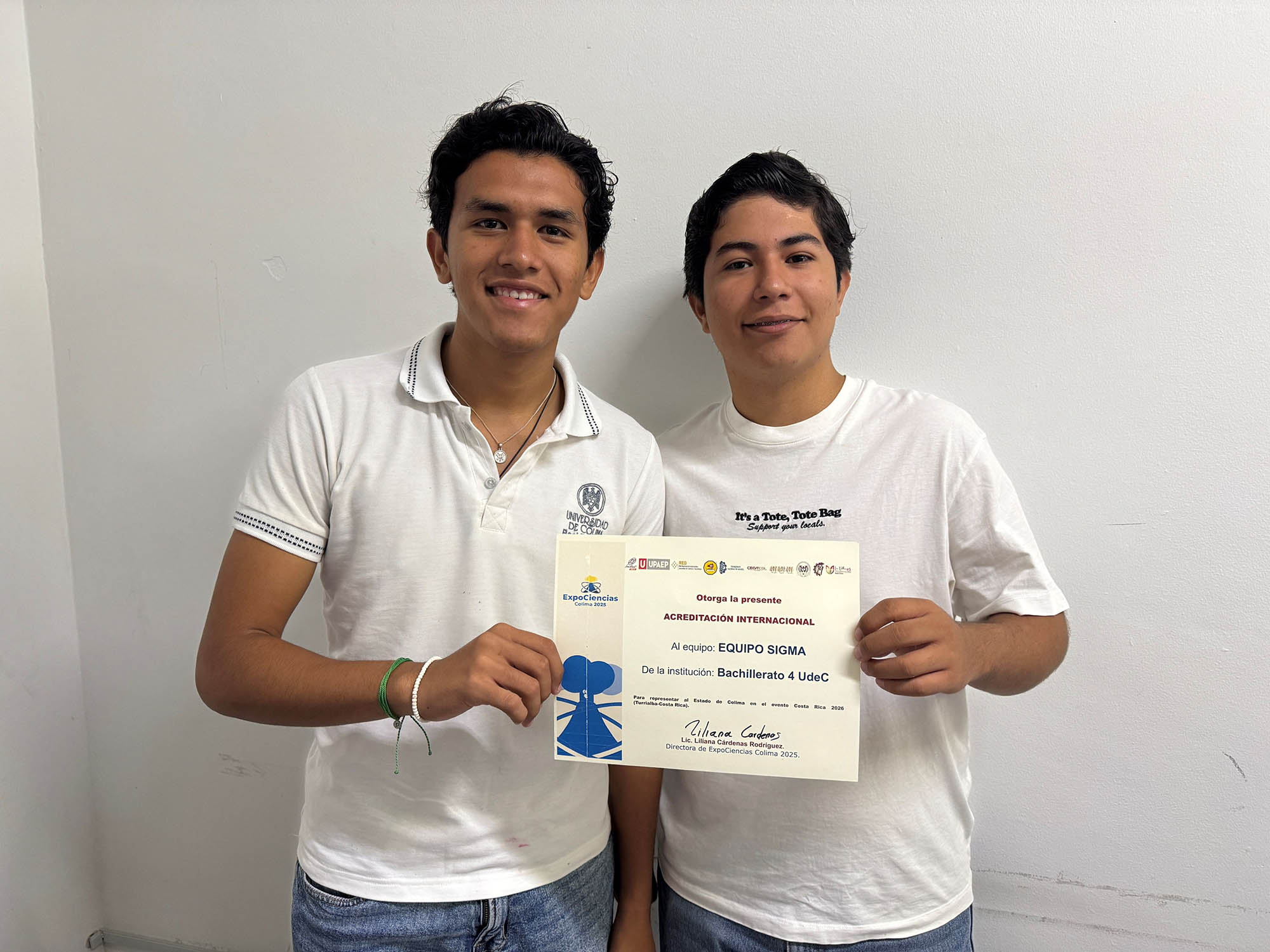 Los estudiantes Diego Vázquez Montes y Heber Jeeziel Martínez Álvarez, del cuarto semestre del Bachillerato 4 de la Universidad de Colima, ganaron el primer lugar en la ExpoCiencias Colima 2025 con su proyecto Sistema de Gestión de Materiales y Alertas Comunitarias (SIGMA). Gracias a este logro, representarán a Colima y a México en el evento internacional que se realizará en Costa Rica en 2026.