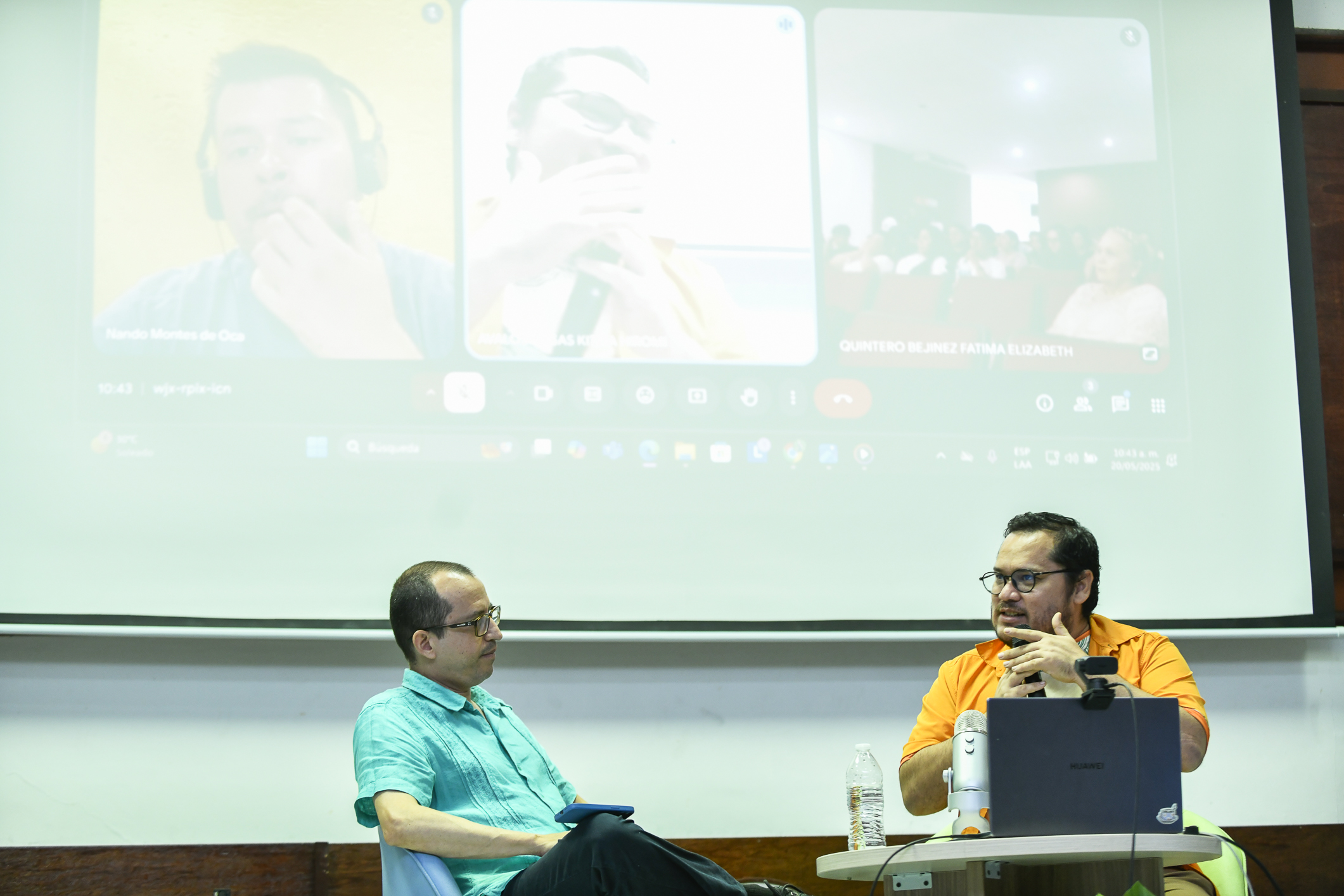 La primera actividad fue el panel “Proyectando ideas”, en el que participaron Nando Montes de Oca y Nelson Aldape, co-director y productor de cortometrajes como “Tecuani, Hombre Jaguar”, así como del Festival de Cine Tecomán. Ambos son egresados de la Facultad de Letras y Comunicación de la UdeC.