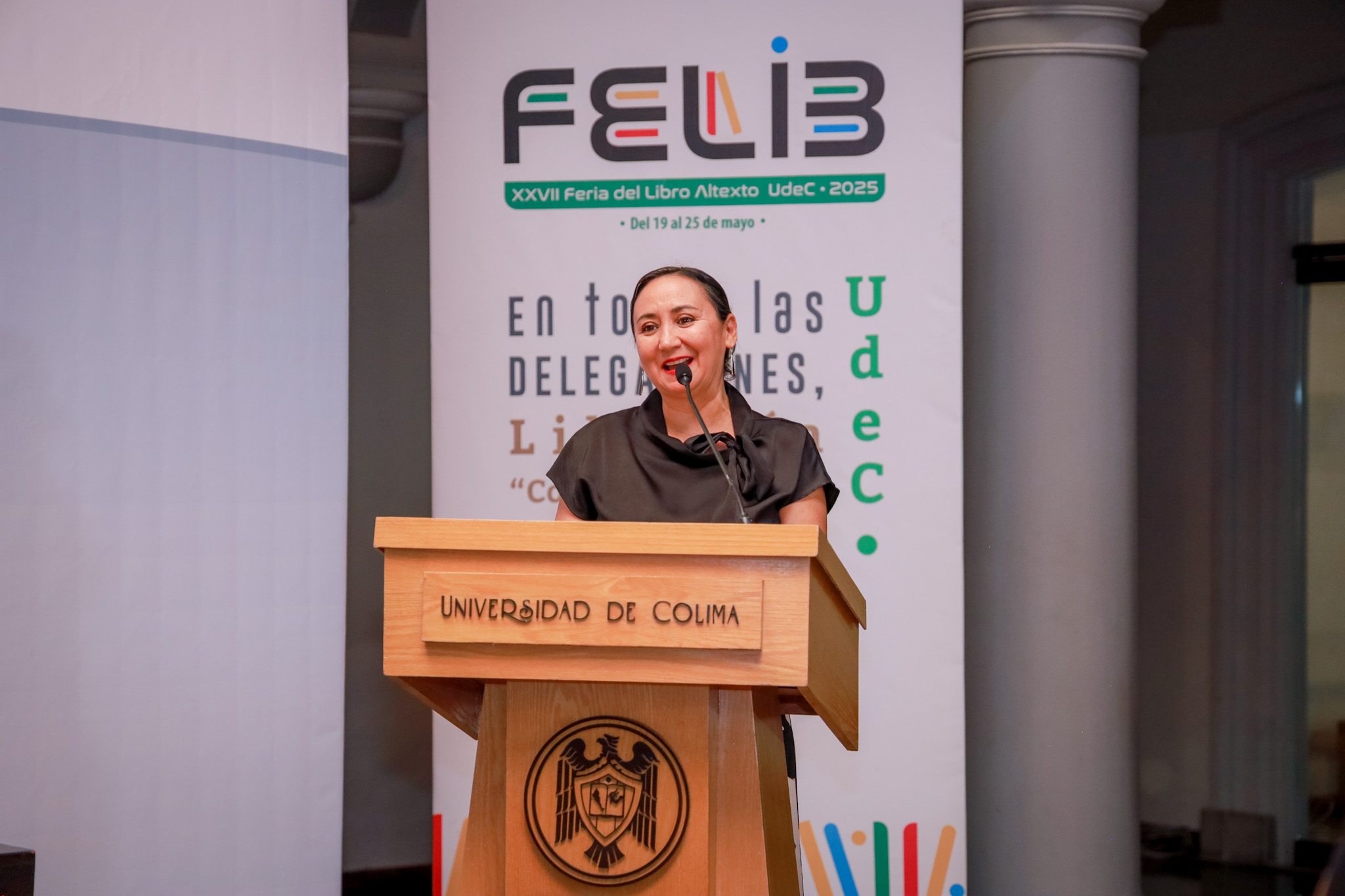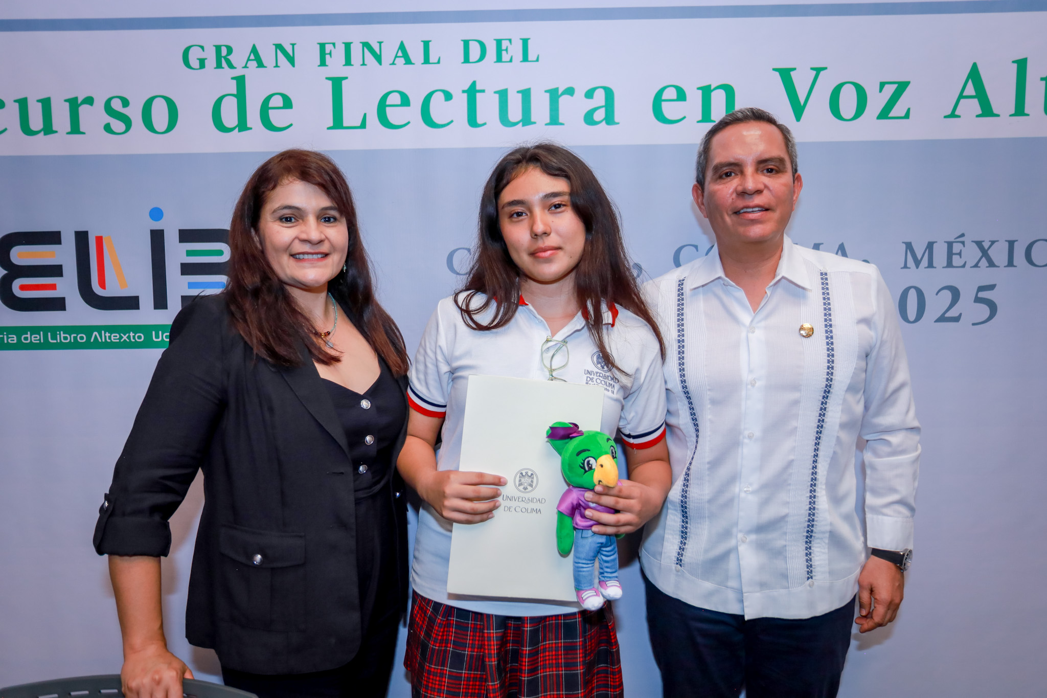 Vanessa Bautista, estudiante del Bachillerato 18 de la Universidad de Colima, ubicado en Coquimatlán, se coronó ganadora del XIII Concurso de Lectura en Voz Alta, cuya gran final se celebró este viernes 23 de mayo en la Pinacoteca Universitaria, como parte de las actividades centrales de la Feria del Libro Altexto 2025. El reconocimiento le fue entregado por Christian Torres Ortiz Zermeño, rector de la Universidad de Colima.