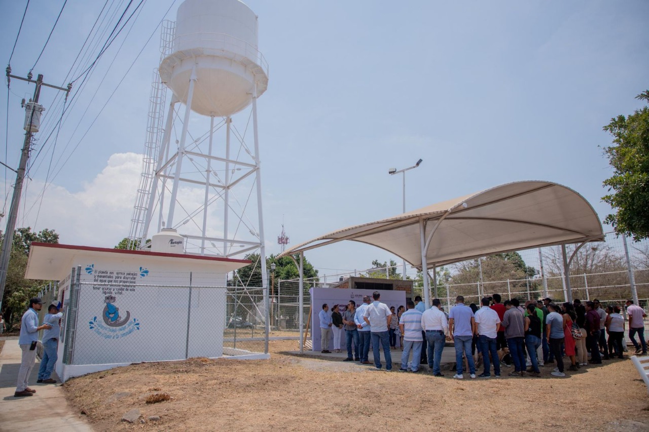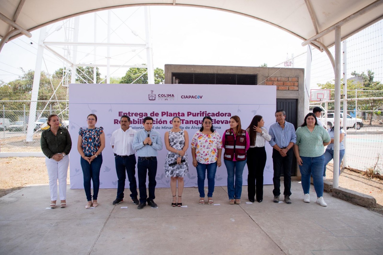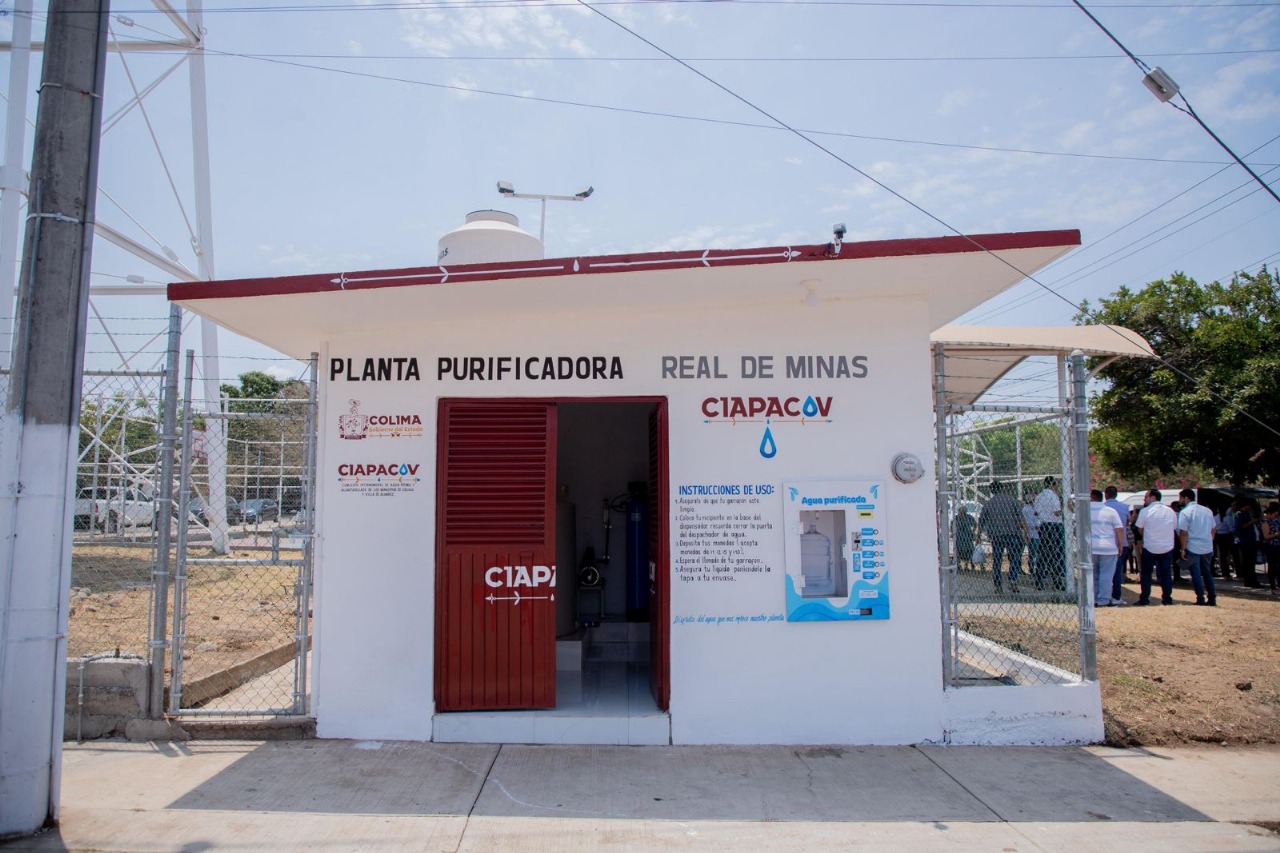 La gobernadora Indira Vizcaíno Silva, acompañada por Vladimir Parra Barragán, director general de la Comisión Intermunicipal de Agua Potable y Alcantarillado de Colima y Villa de Álvarez (Ciapacov), entregó este lunes una planta purificadora y la rehabilitación del tanque elevado en la colonia Real de Minas, en el municipio villalvarense.