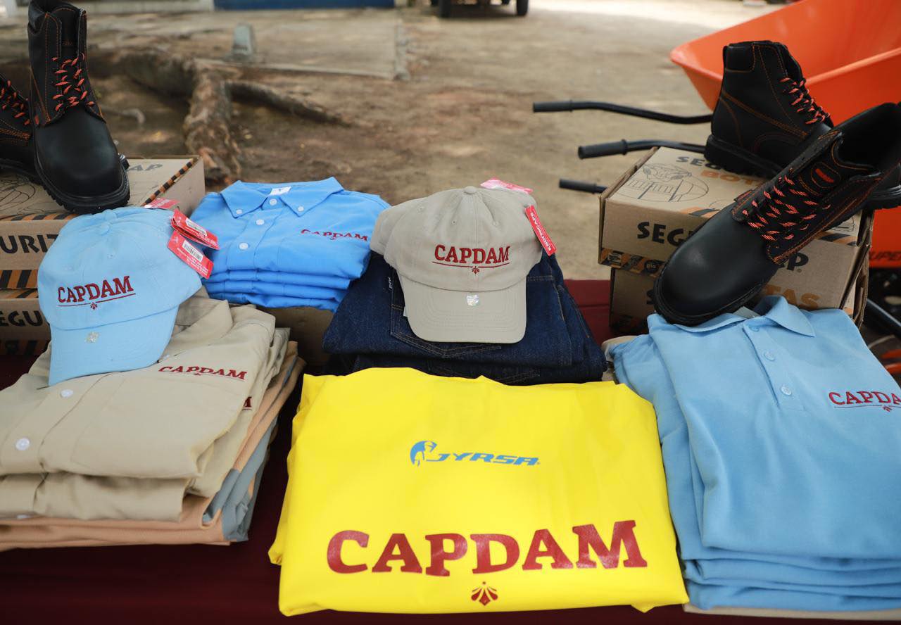 En este evento, la presidenta municipal estuvo acompañada por el titular de Capdam, Mamés Eusebio Velázquez y el secretario general del SUTCAPDAM, Hugo Iván Mancilla. Juntos realizaron la entrega de playeras, gorras, pantalones de mezclilla, impermeables, botas y herramientas de trabajo como carretillas, picos, palas, barras y conos.