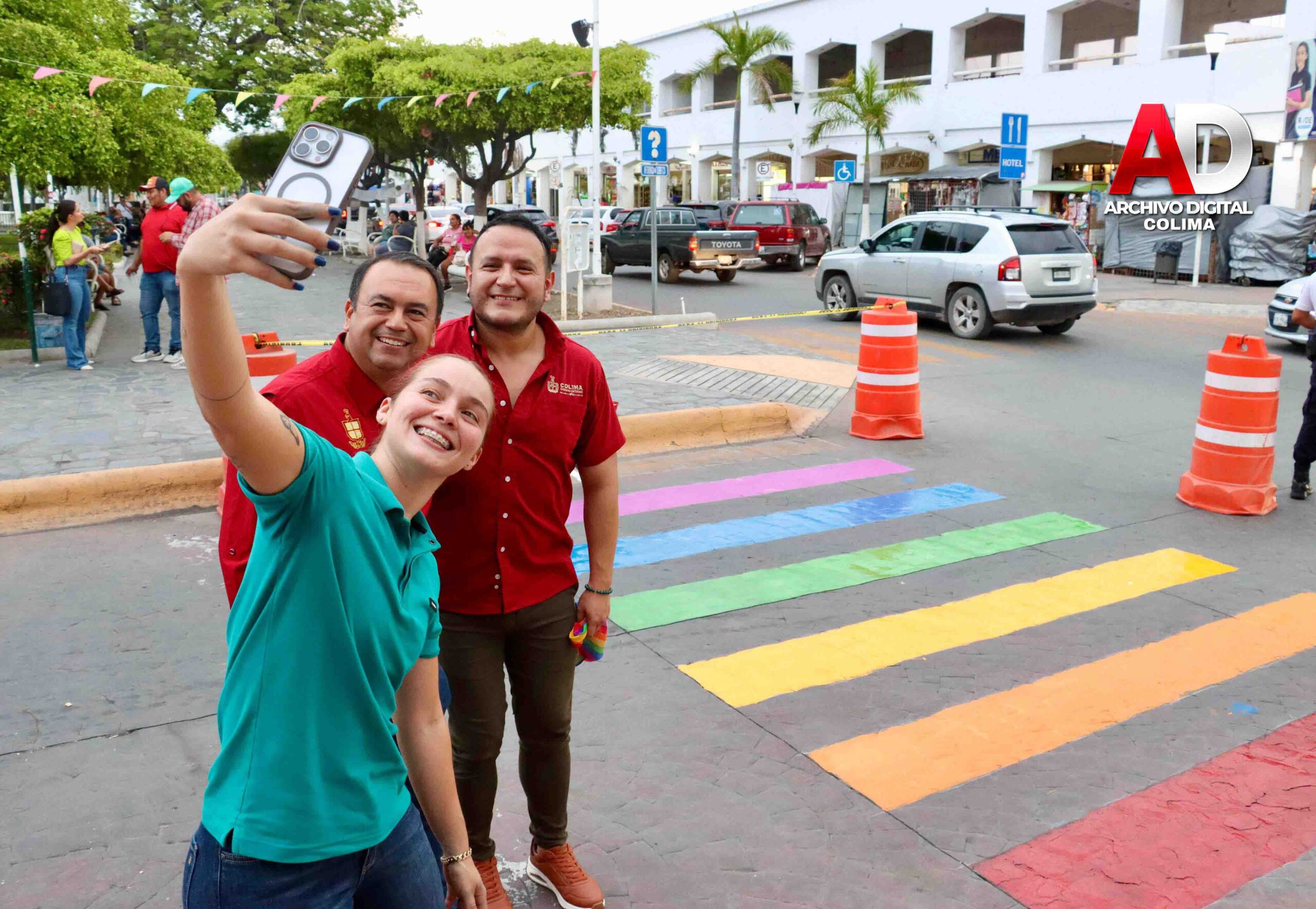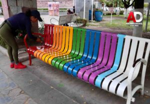 Como parte de las actividades conmemorativas del mes de la diversidad, también se llevó a cabo la pinta peatonal y la pinta de una banca con los colores representativos de la bandera LGBT, acciones que refuerzan el compromiso del municipio con la inclusión y la visibilidad de todas las identidades.