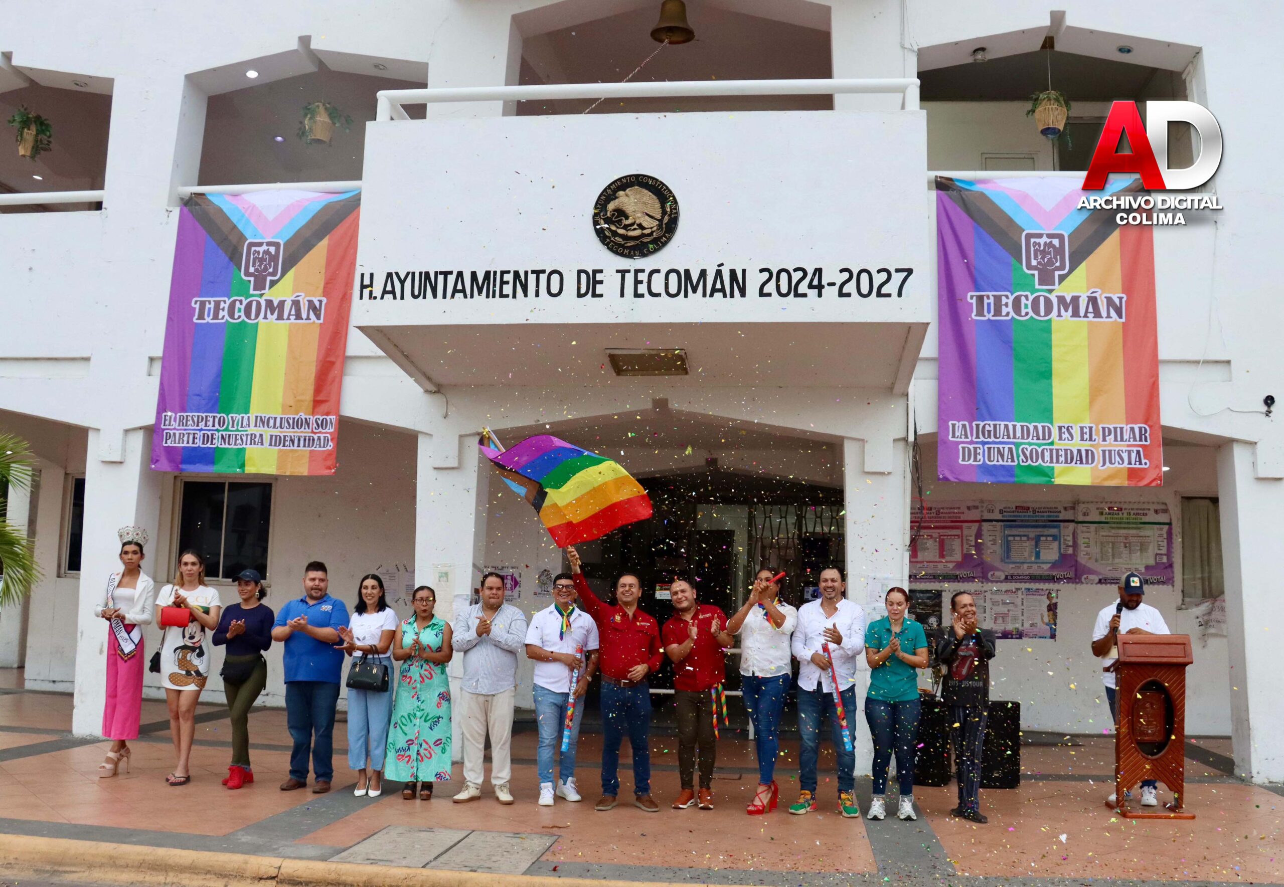 Este miércoles, el presidente municipal de Tecomán, Armando Reyna Magaña, encabezó la colocación de la bandera LGBT en el balcón de la Presidencia Municipal, en un acto simbólico que contó con la participación de integrantes de la asociación “Voces del Orgullo Tecomense”.