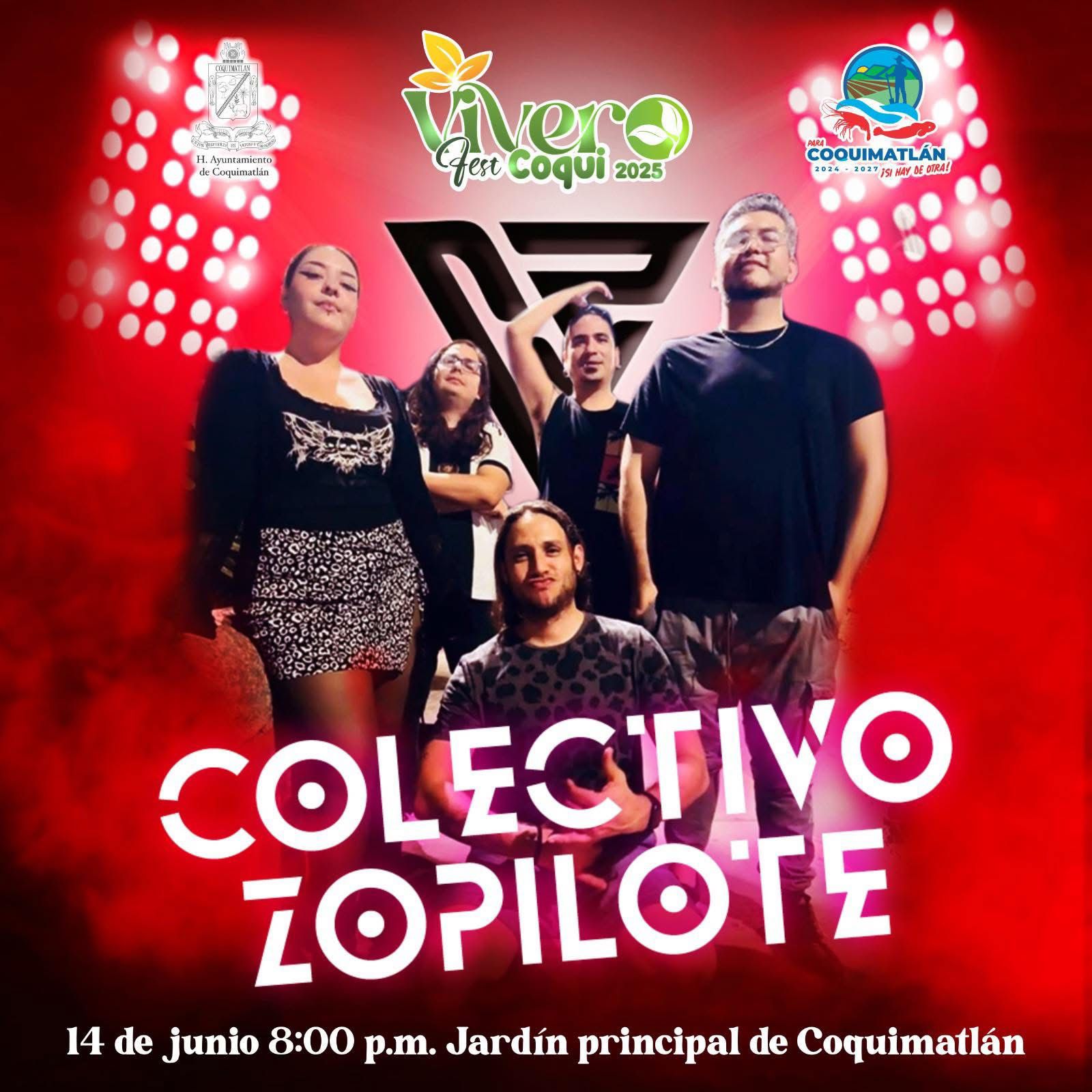 El presidente municipal de Coquimatlán, Luis Olivares, anunció que el Colectivo Zopilote se presentará en el Vivero Fest Coqui 2025.